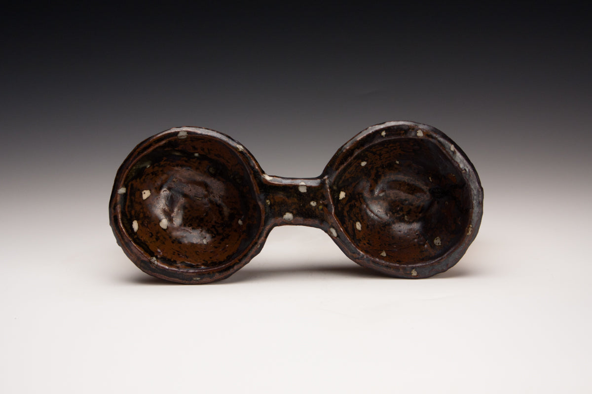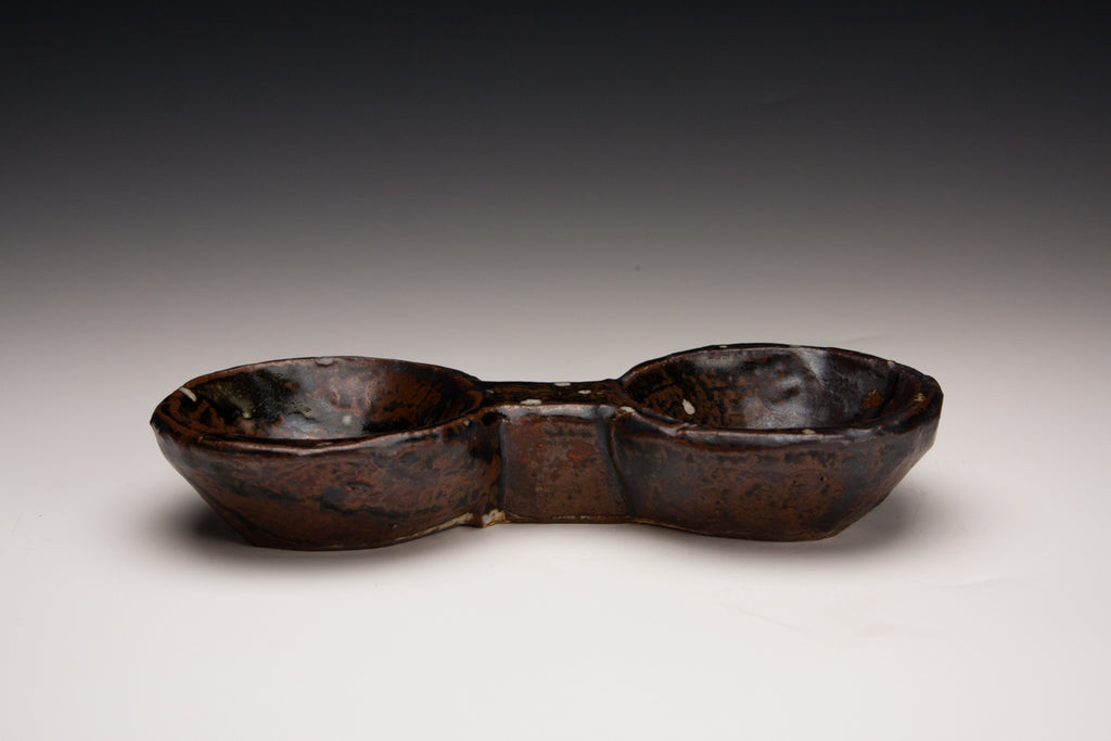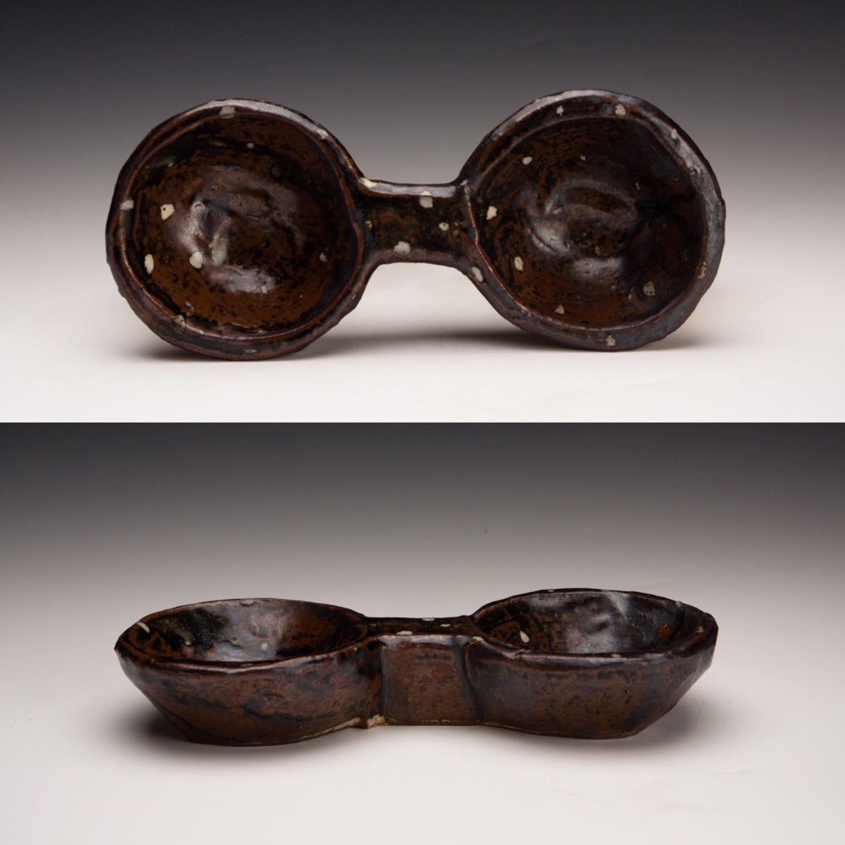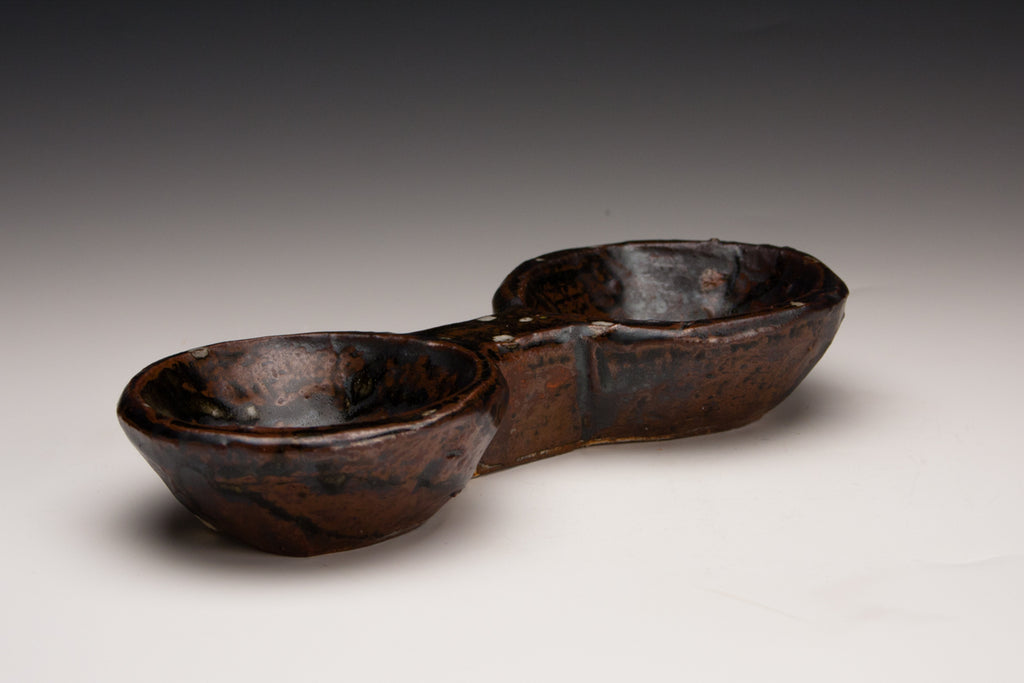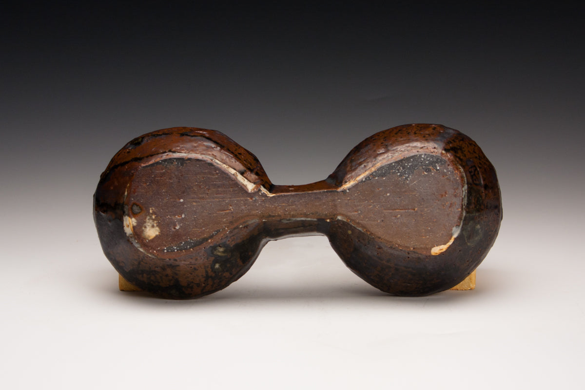 Wood fired local red clay. Wax resist and iron deco. 1 x 8 x 3