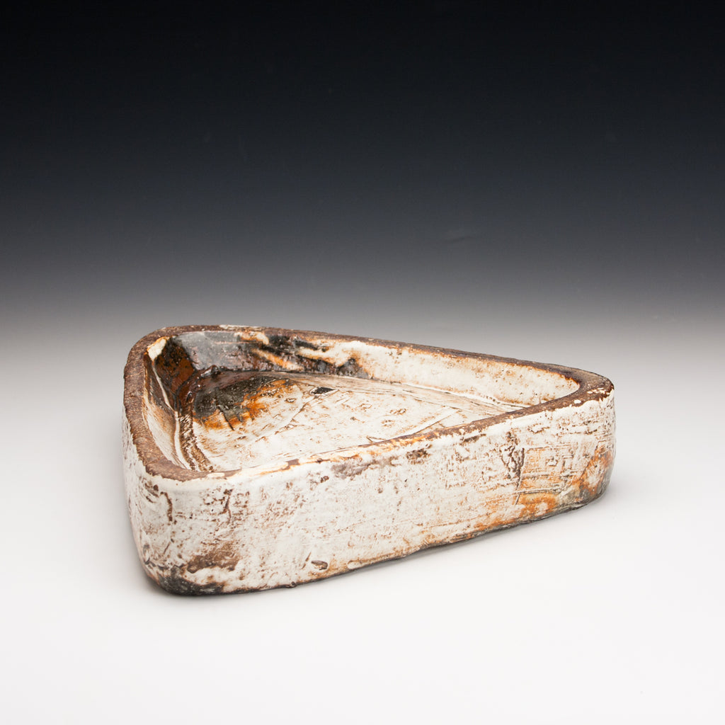 Wood fired local red clay. Bandana Kaolin and Clear Glaze. 9 x 2.25