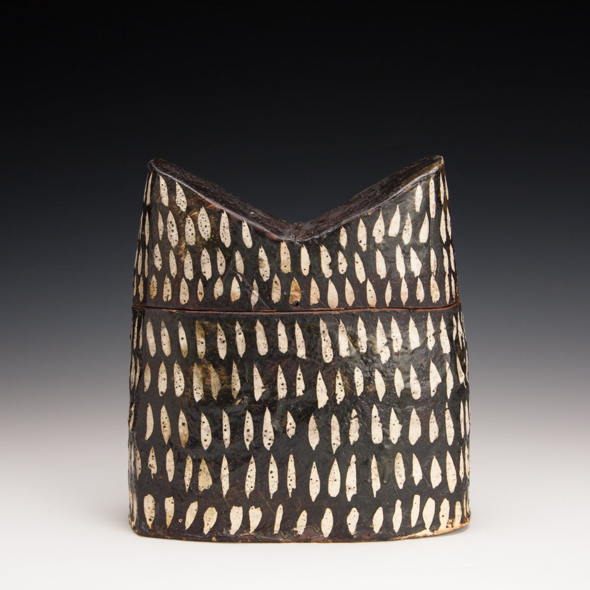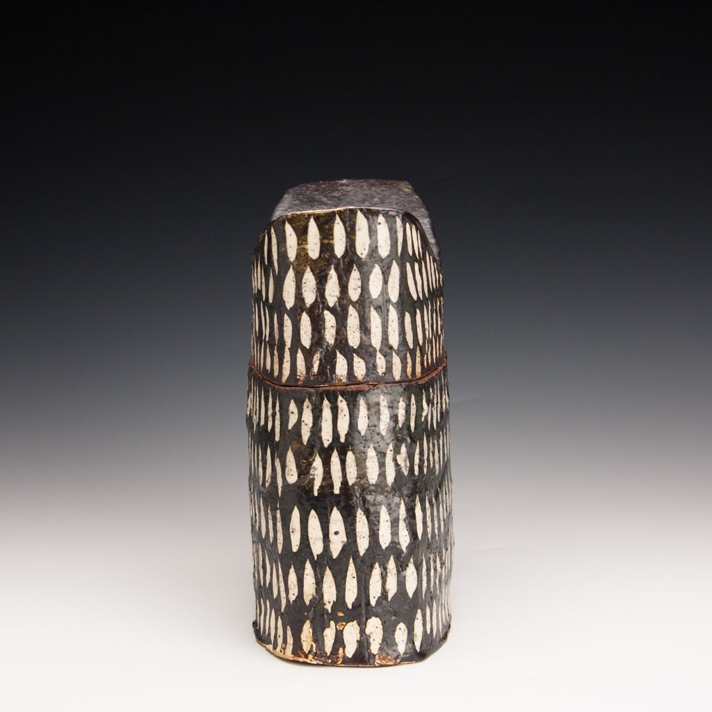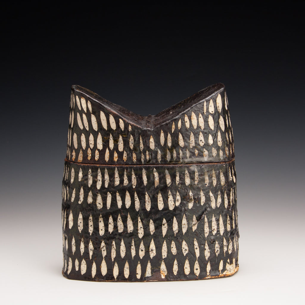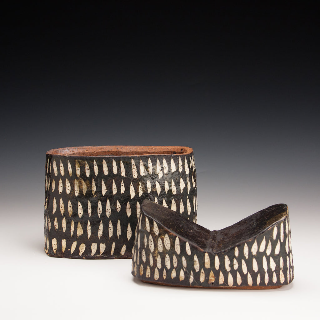 Wood fired local red clay. Wax resist and iron wash. 6" x 8" x 3.5"
