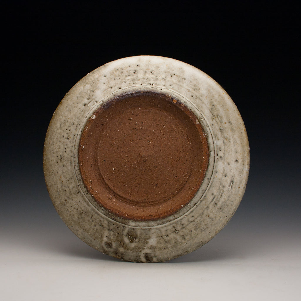Wood fired local red clay. White slip and nuka glaze. 10.5 x 1.5