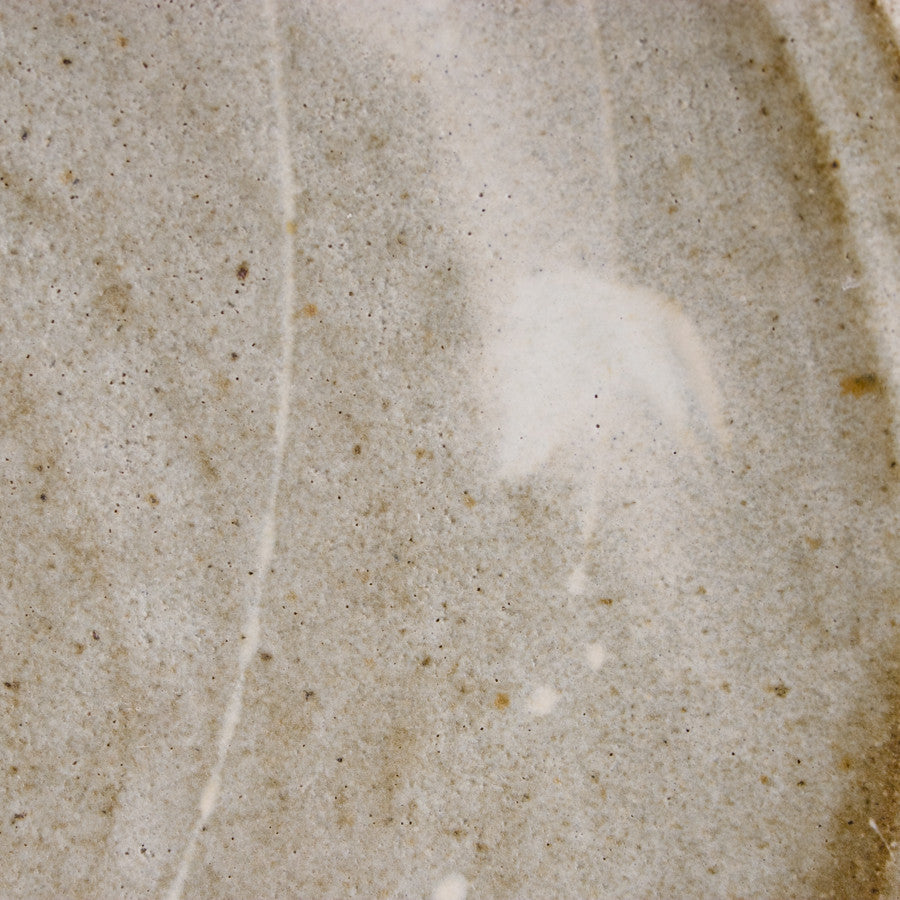 Wood fired local red clay. White slip with Nuka glaze. 3.25 x 18.25