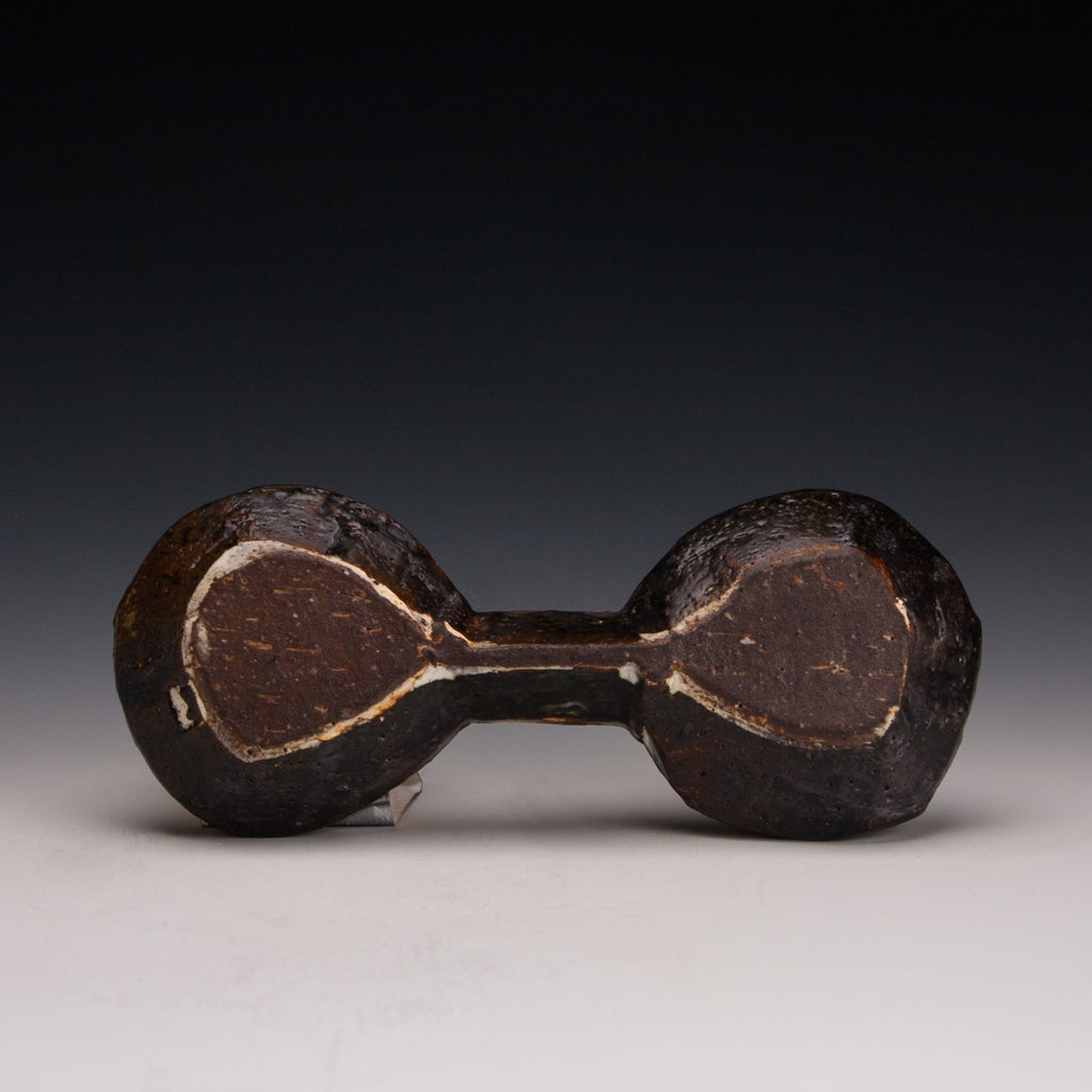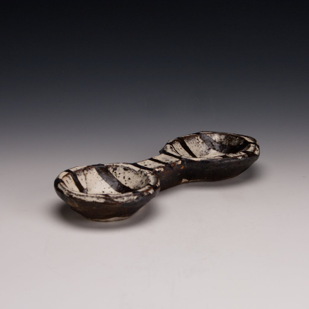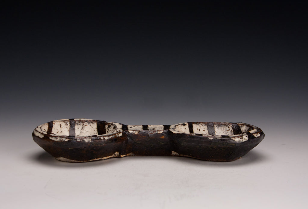 Wood fired local red clay. Wax resist and iron deco. 1 x 8 x 3