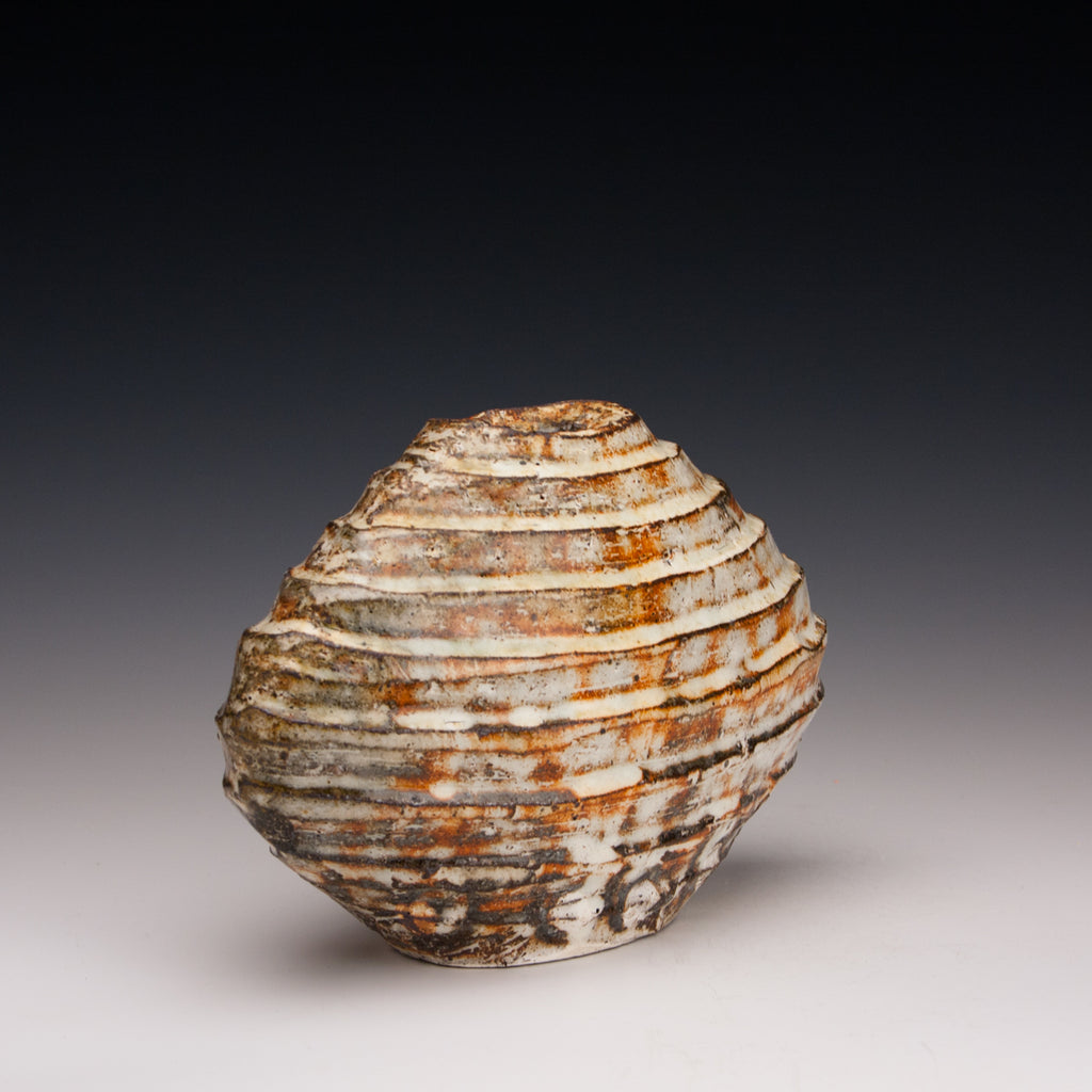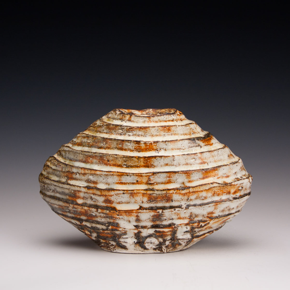 Wood fired local red clay. White slip and clear glaze. 5 x 7.5 x 3