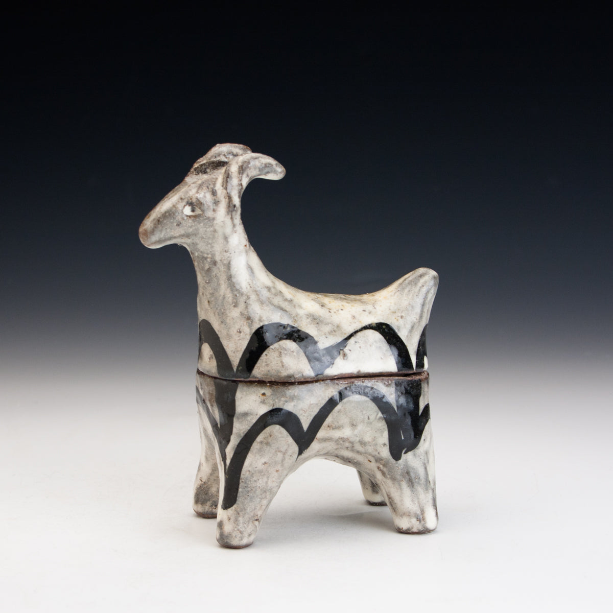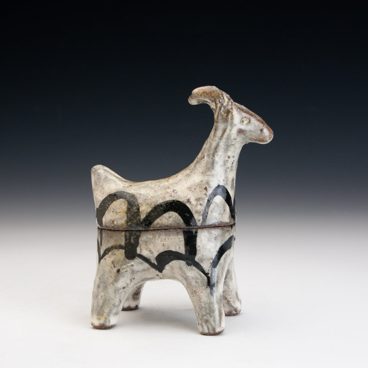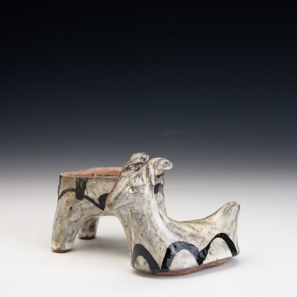 Wood fired local red clay. Bandana Kaolin, clear glaze and black iron. 4 x 5 x 2
