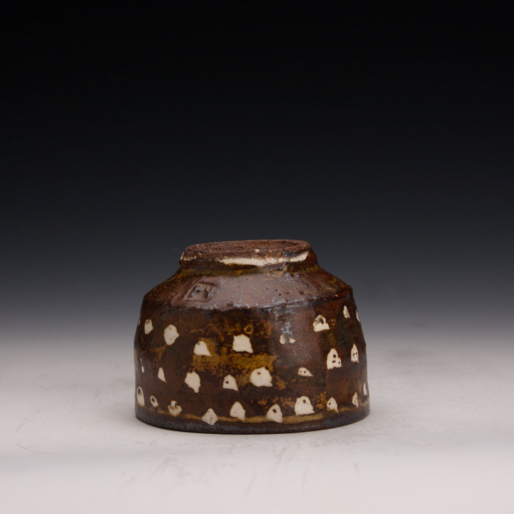 Wood fired local red clay. Wax resist and iron wash. 2.25 x 3.25