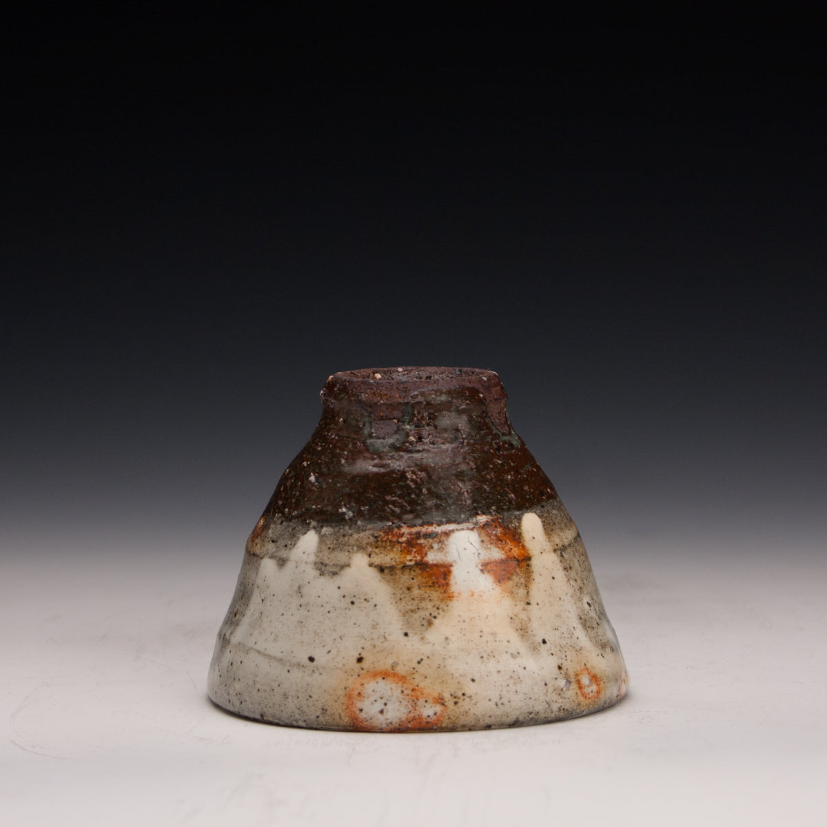 Wood fired local red clay. White slip and clear glaze. 2.75 x 3.75
