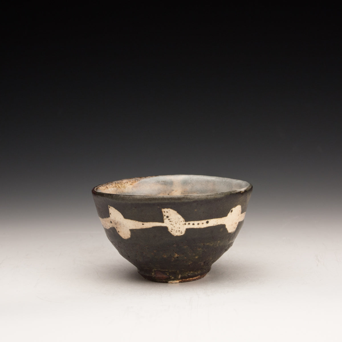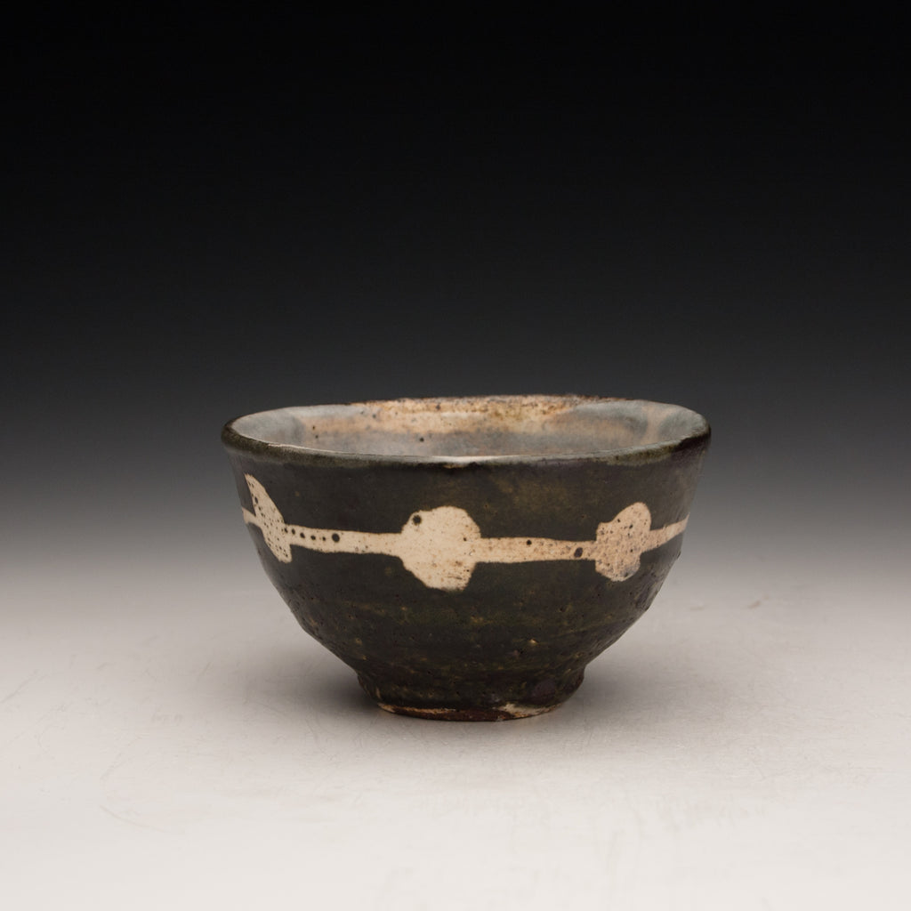 Wood fired local red clay. Wax resist and iron wash. 3.75 x 2