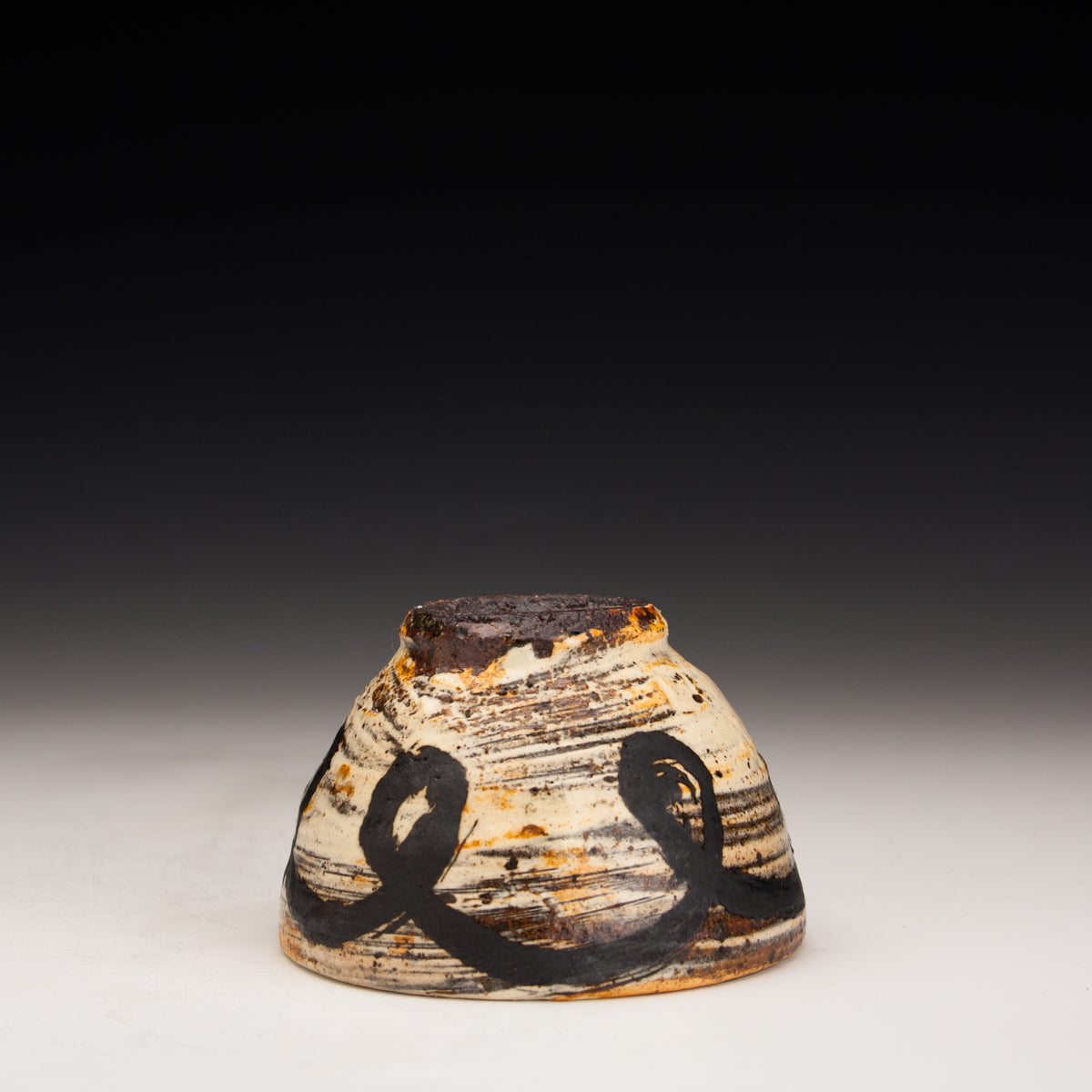Wood fired local red clay. Brushed slip, clear glaze and black iron. 3.5 x 2.25
