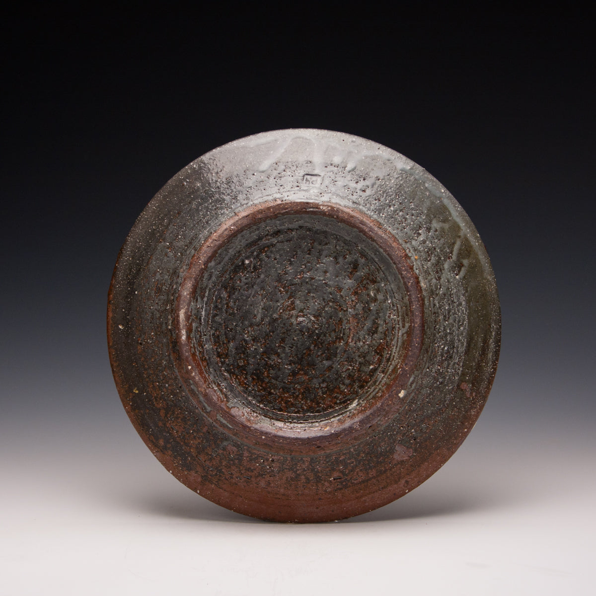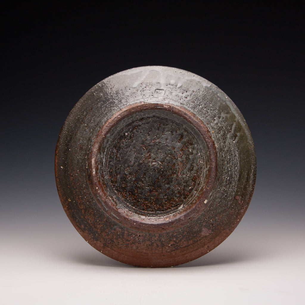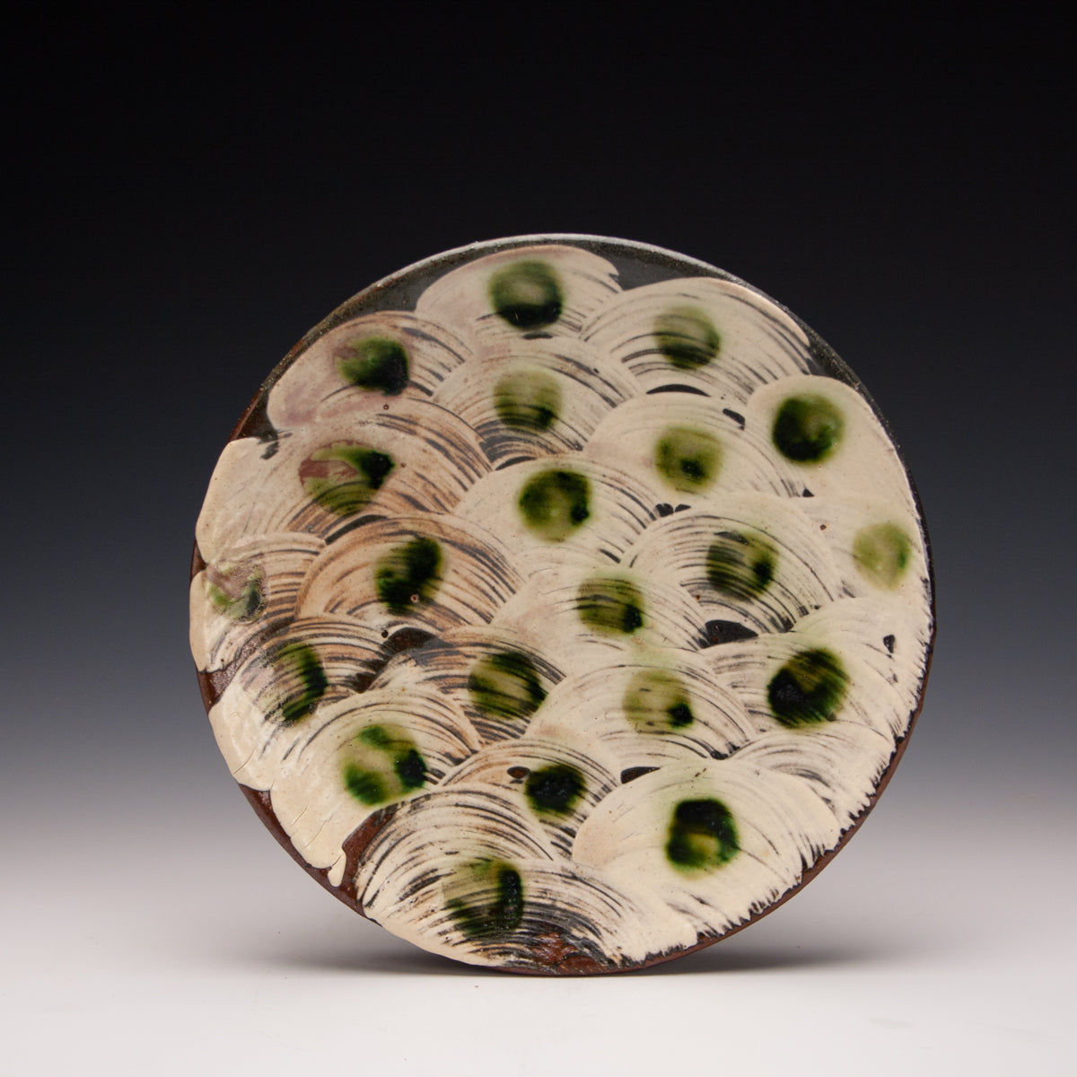 Wood fired local red clay.  Hakame slip and  clear glaze.  10.25 x 1.25