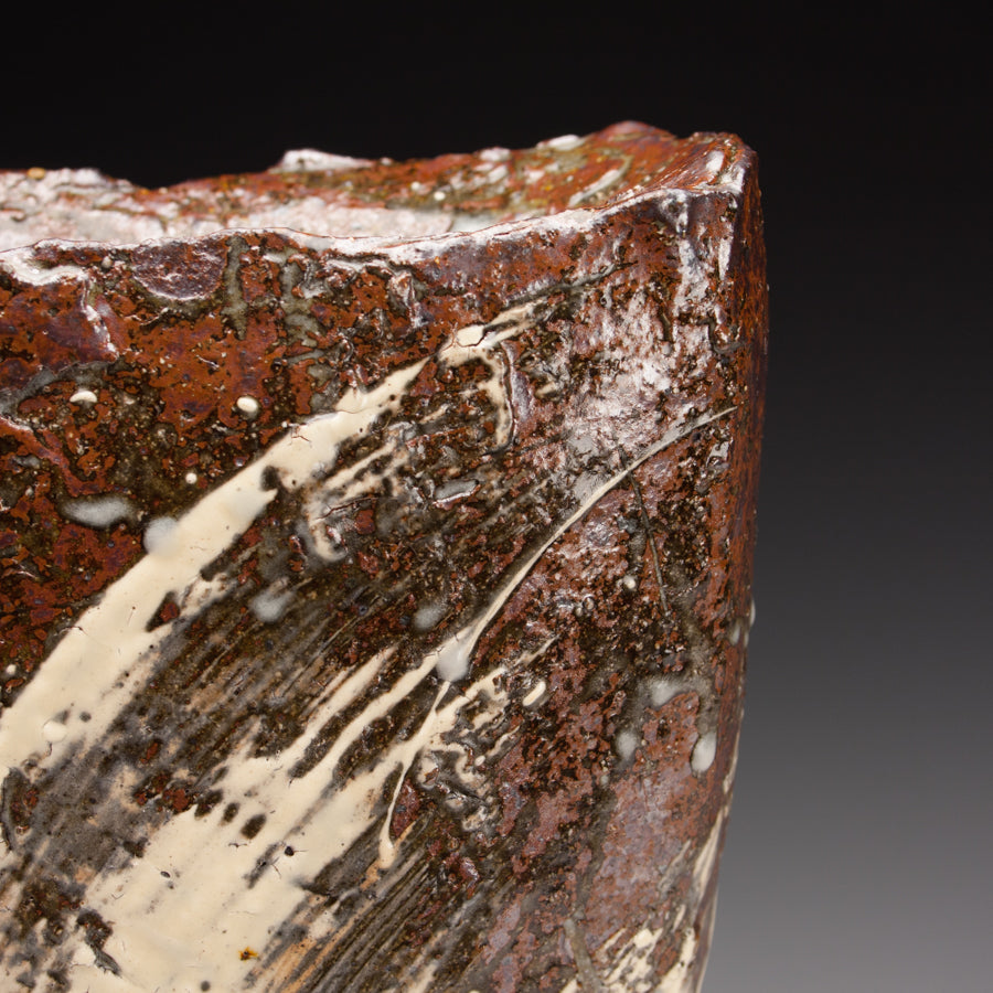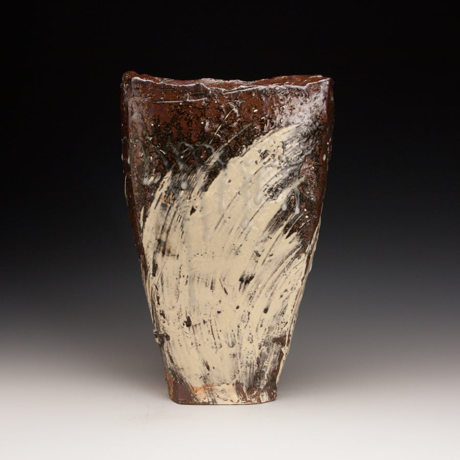 Wood fired local red clay. White slip and clear glaze. 10 x 7 x 3.5