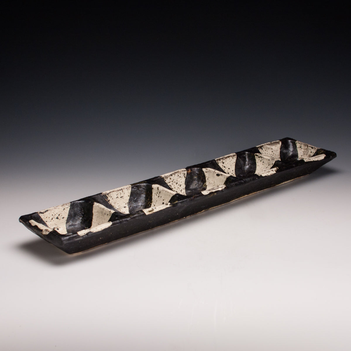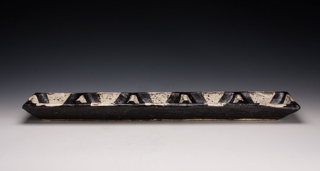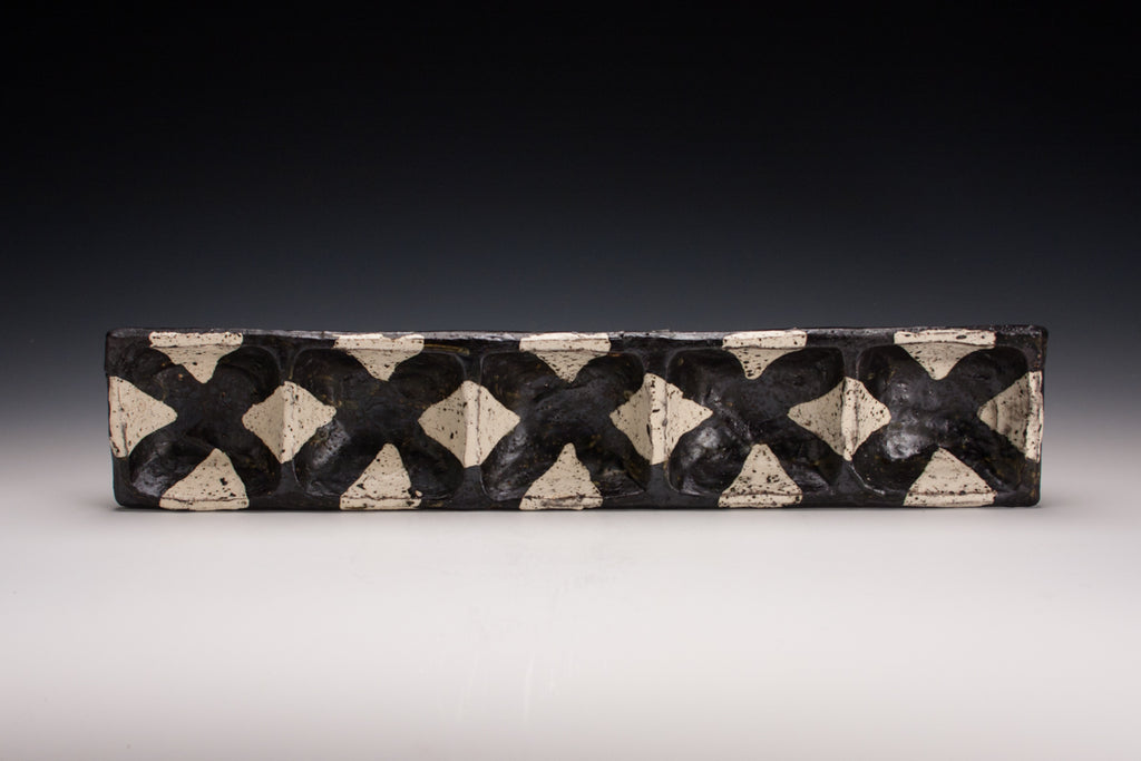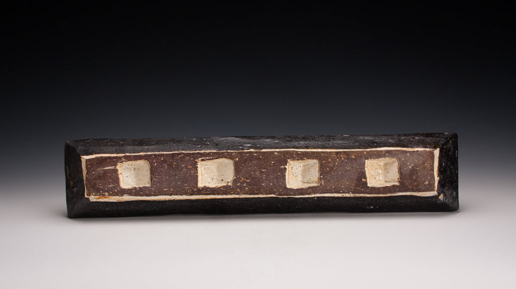 Wood fired local red clay. Wax resist and iron deco. 1.5 x 17.5 x 3.75