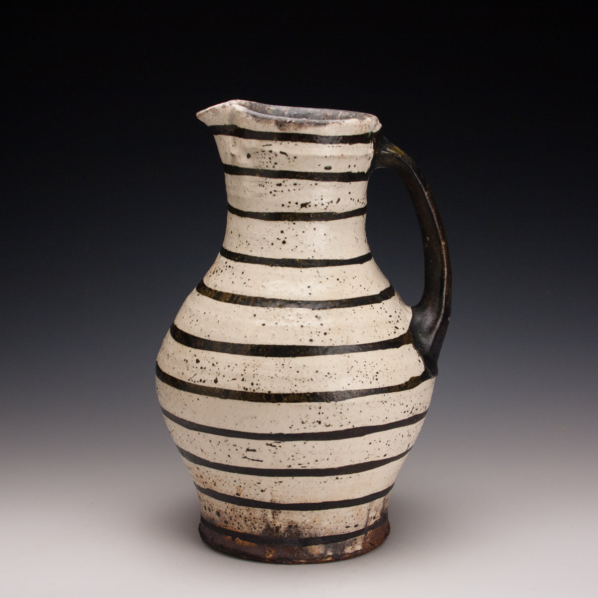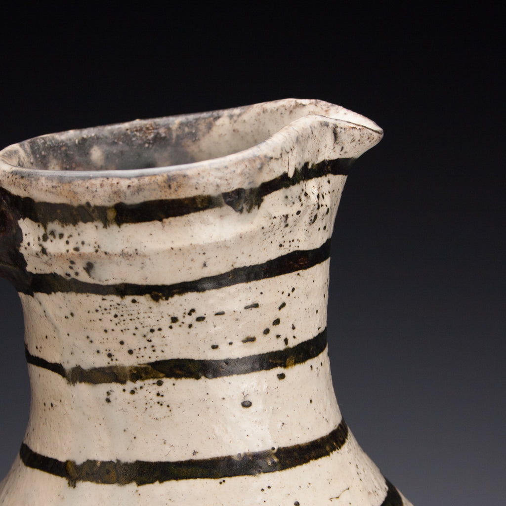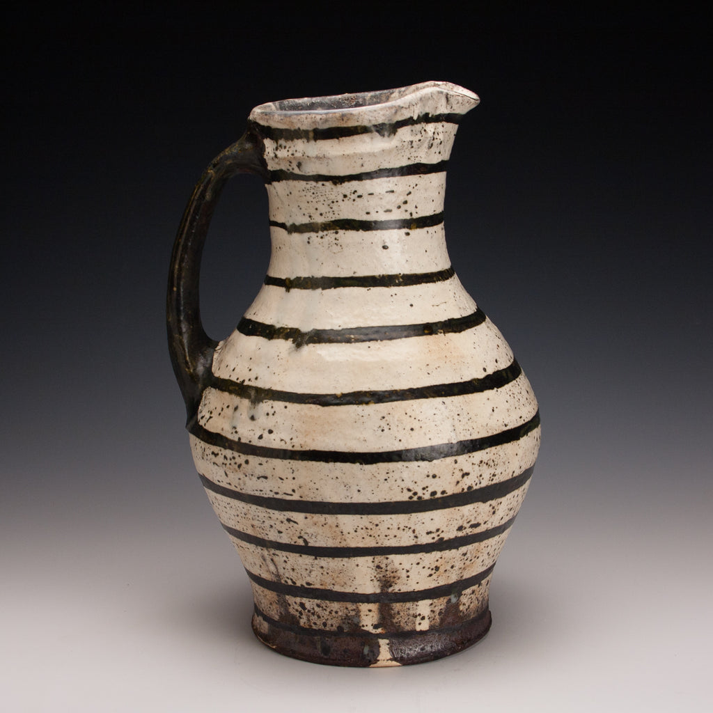 Wood fired local red clay. Wax resist and iron stripes. 11.5 x 7.5