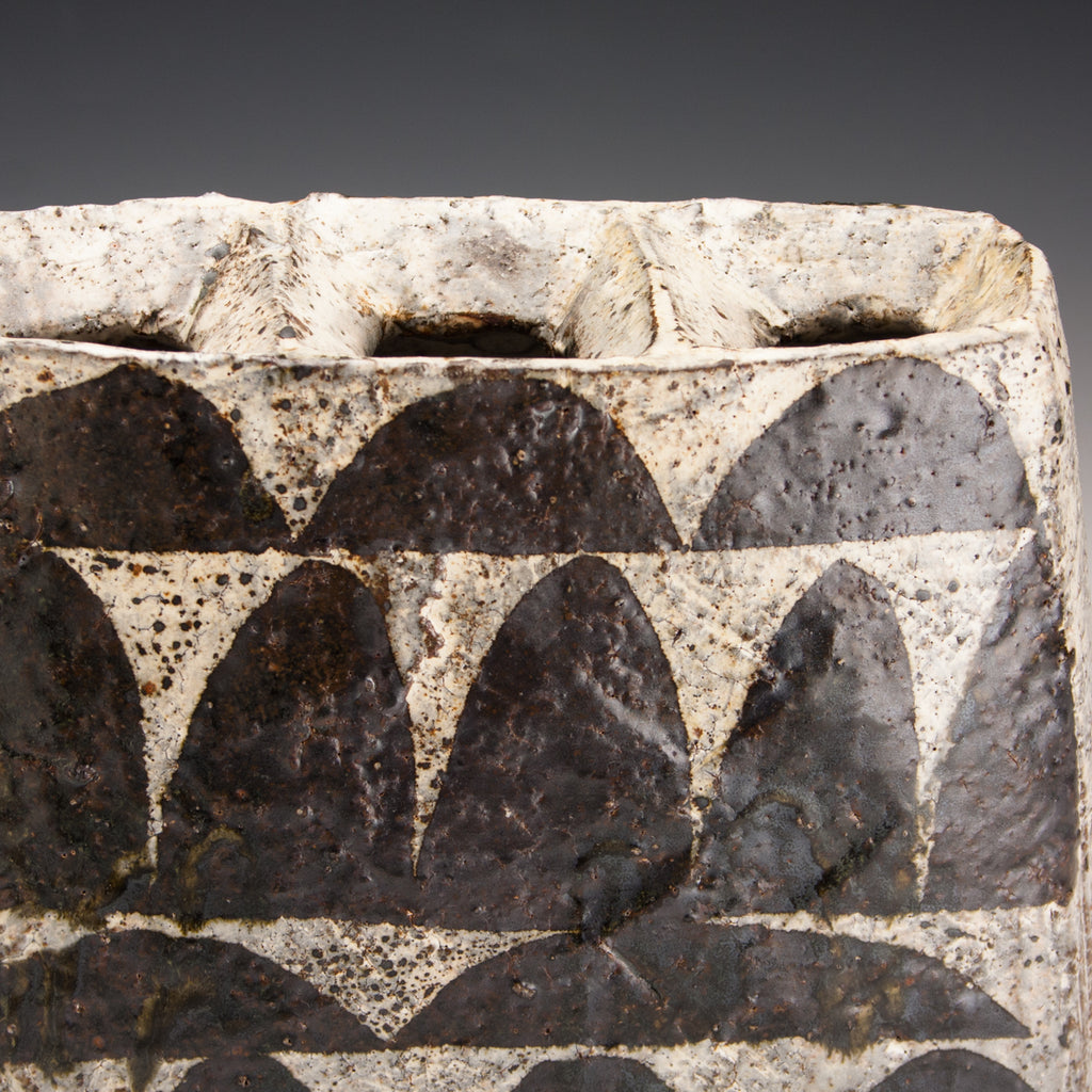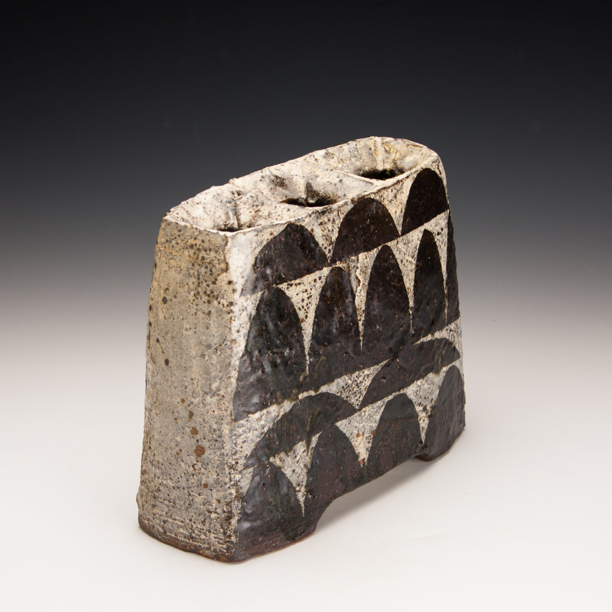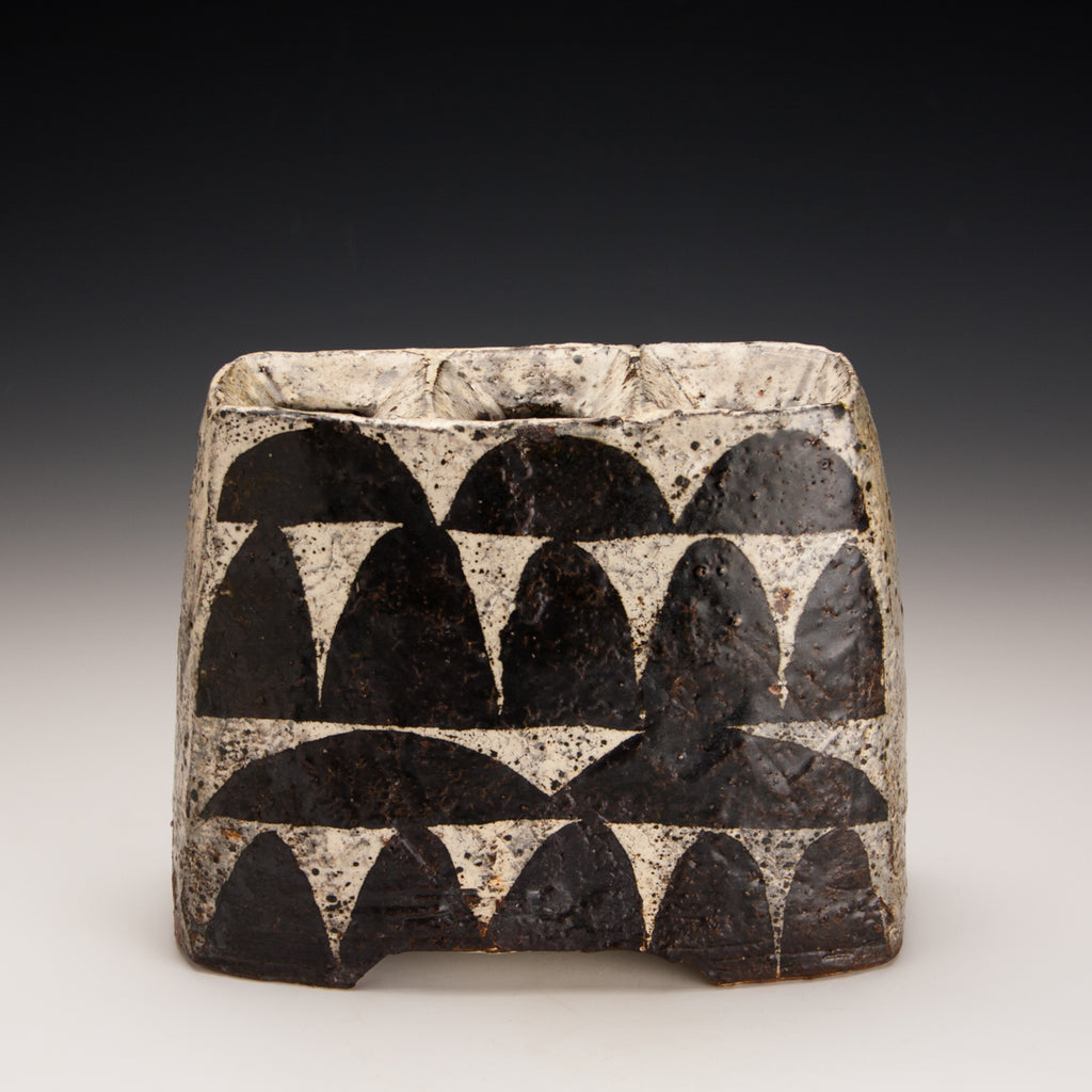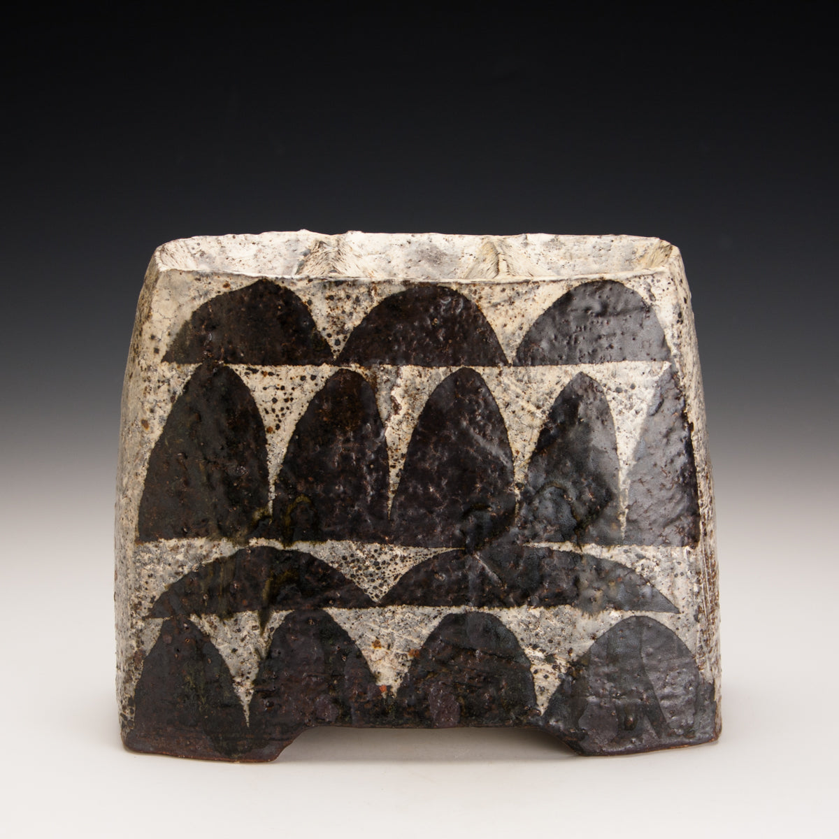 Wood fired local red clay. Wax resist and iron deco. 7.5  8 x 3.5
