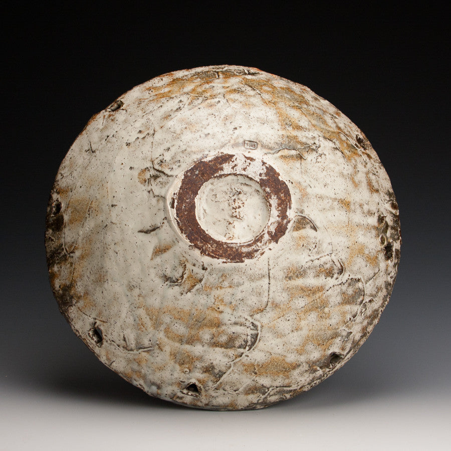 Wood fired local red clay. Kohiki slip with punchong glaze and triangle cut-outs. 13 x 4