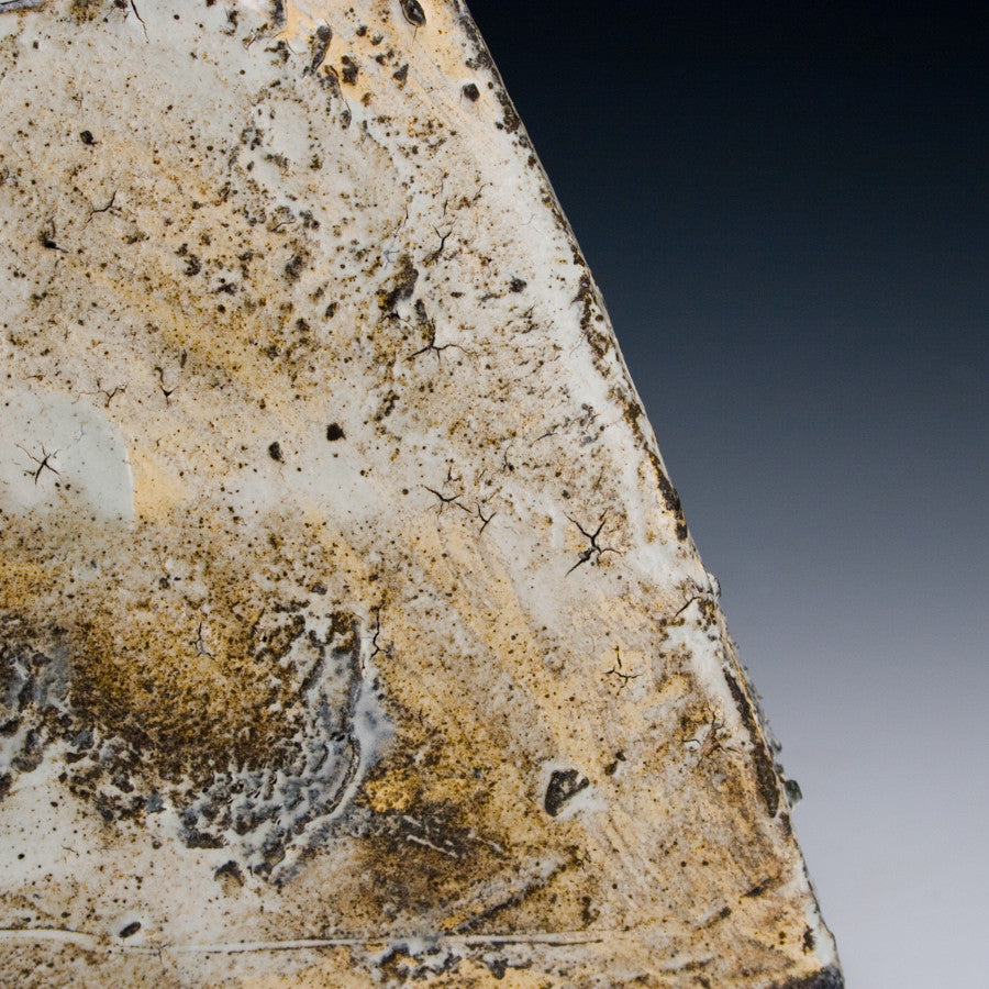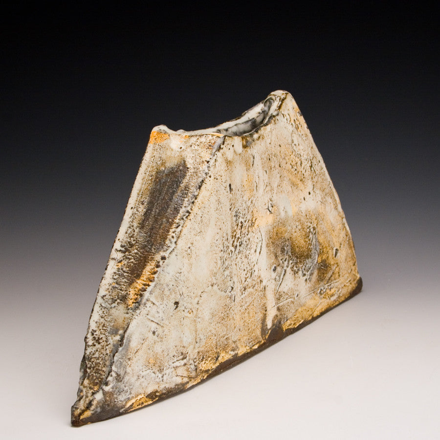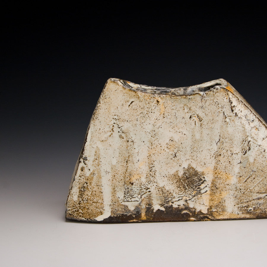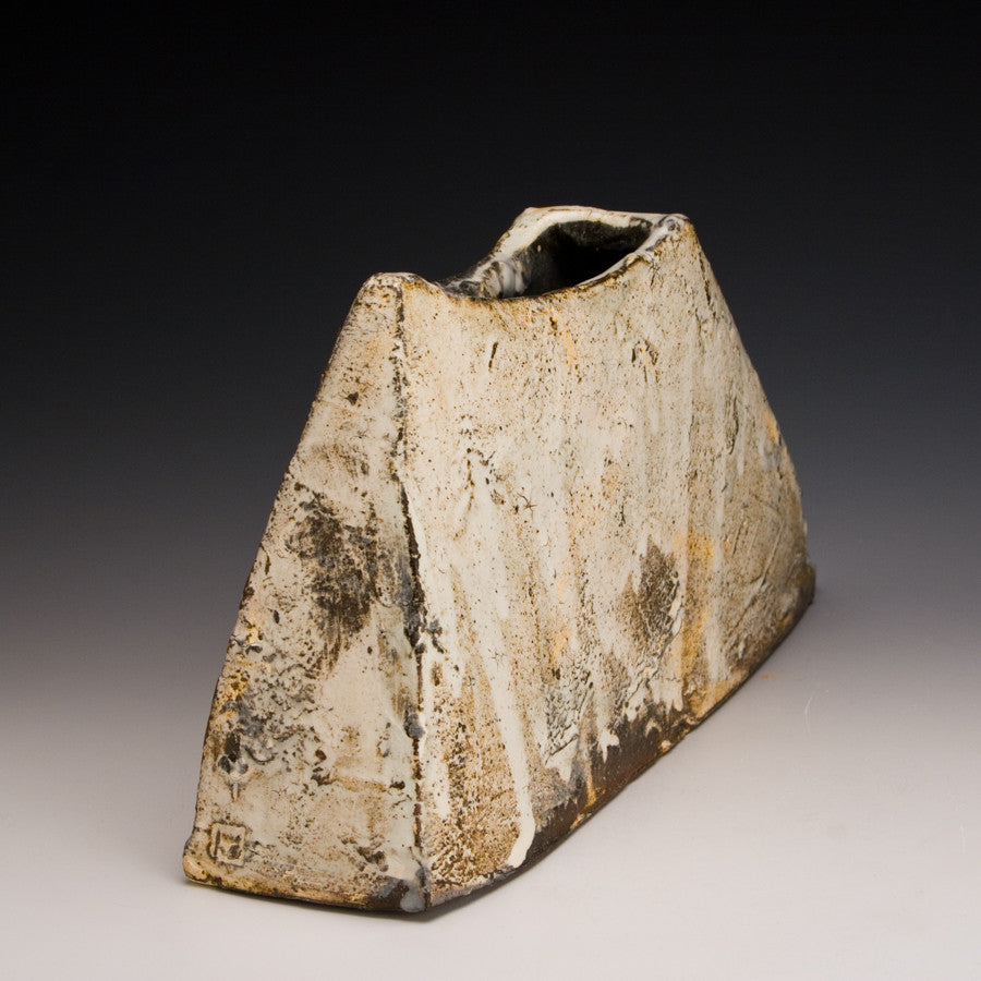 Wood fired local red clay. White slip under clear glaze. 6 x 11 x 3