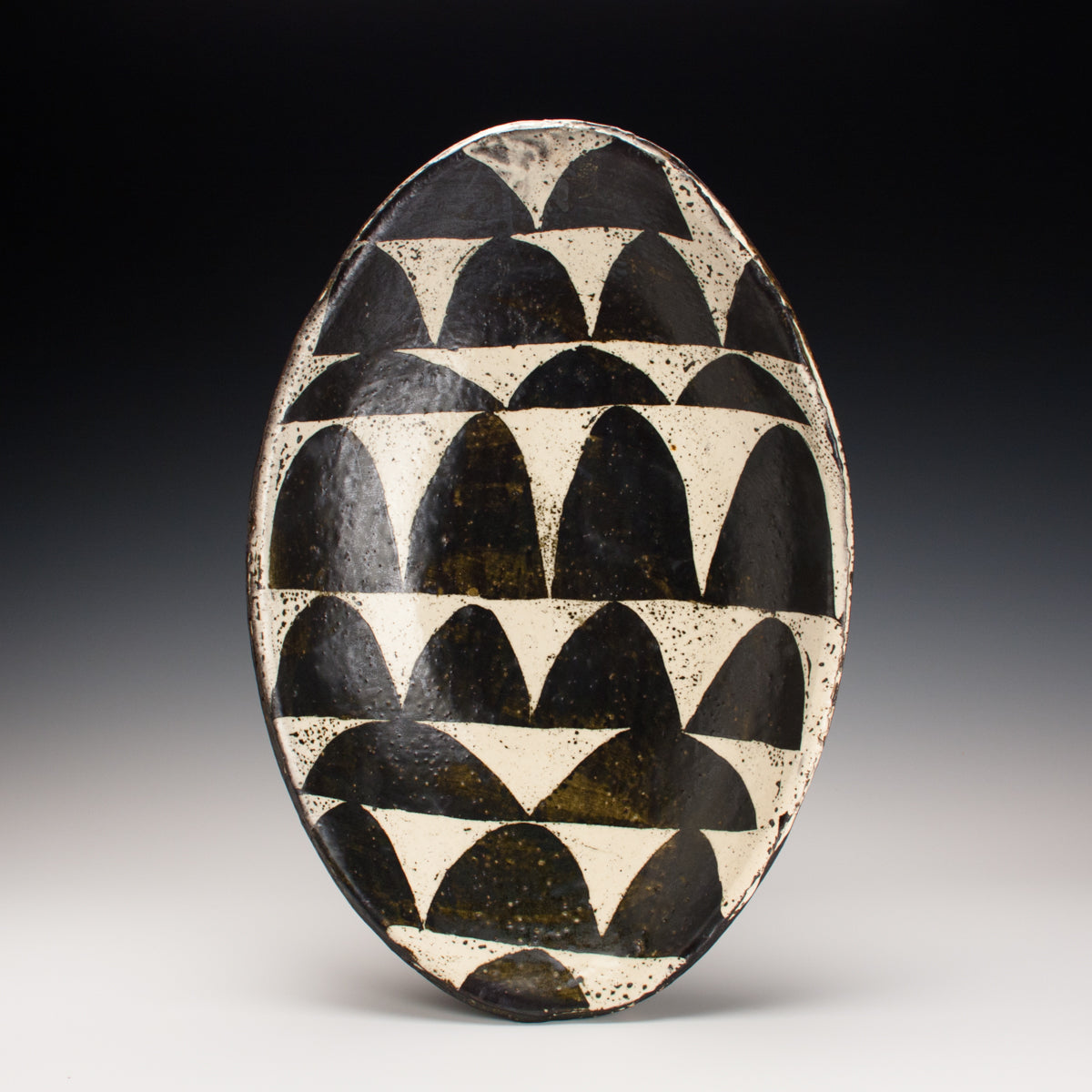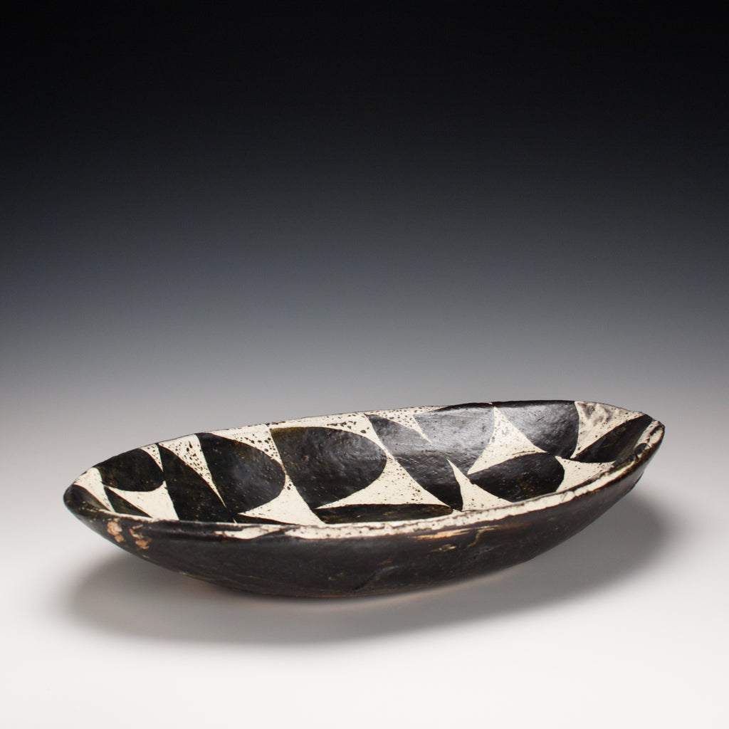 Wood fired local red clay. Wax resist and Iron Deco. 3.25 x 17.25 x 11.5