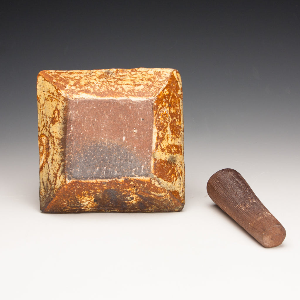 Wood fired local red clay. Yellow glaze and green deco. 1.5 x 5.5