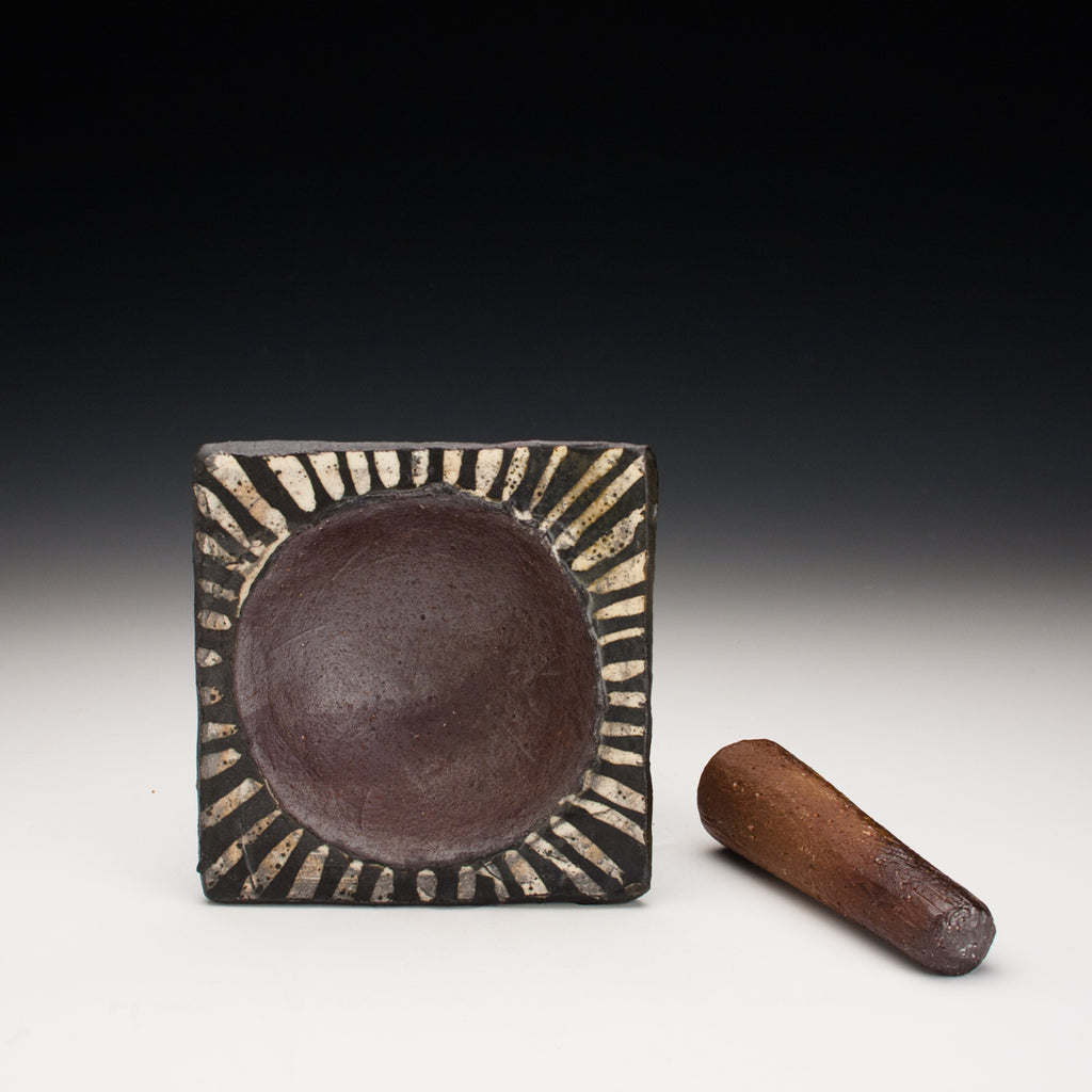 Wood fired local red clay. Wax resist and iron wash. 1.5 x 5.5