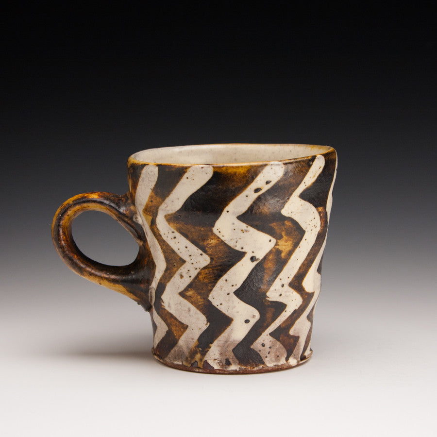Wood fired local red clay.  Wax resist and iron deco. 4.5 x 3.25