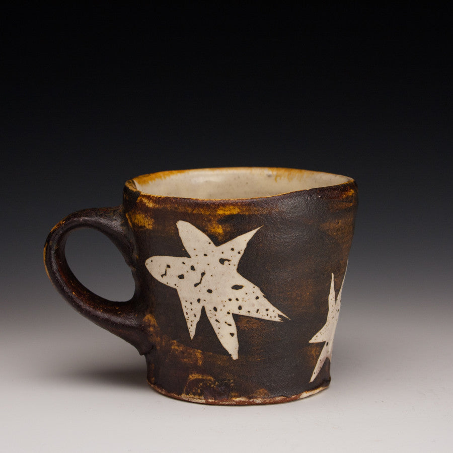 Wood fired local red clay. Wax resist and iron deco.  4.5 x 3.25