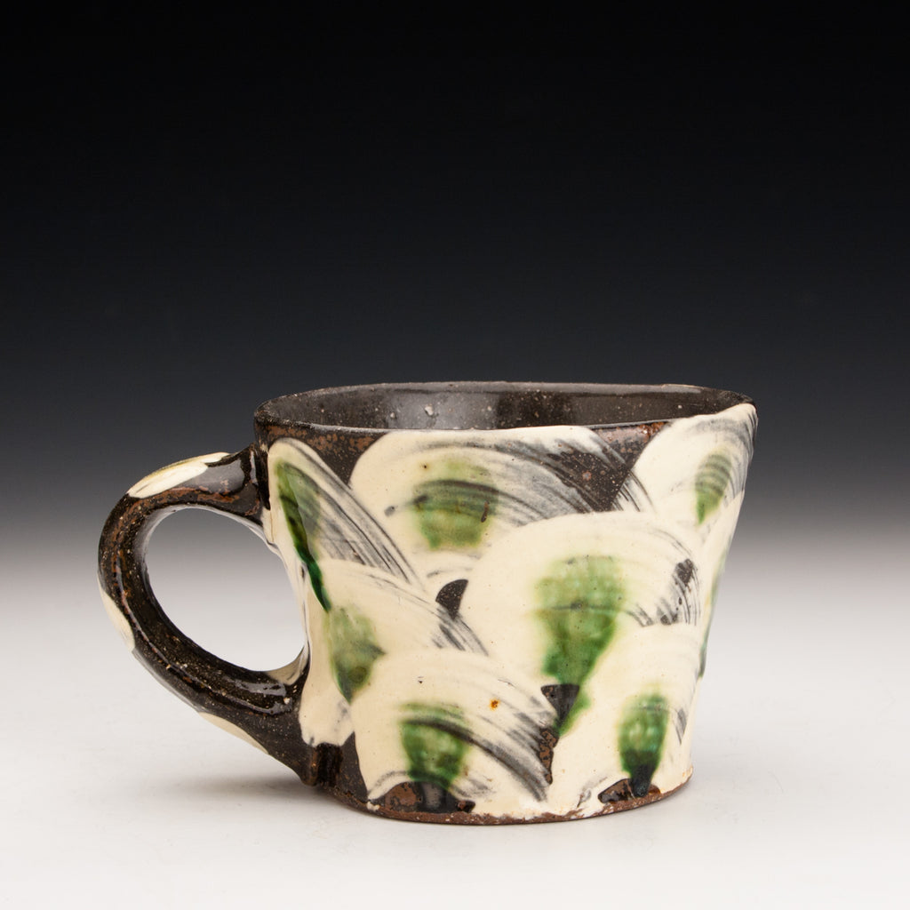 Wood fired local red clay. Brushed Slip, clear glaze and copper green. 5 x 3.25