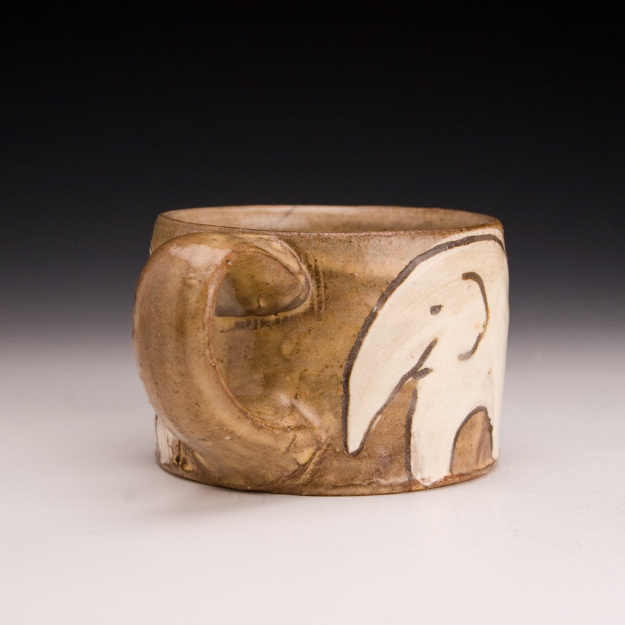 Wood fired local red clay. White slip under clear glaze. 2.5 x 3.5 x 4.25