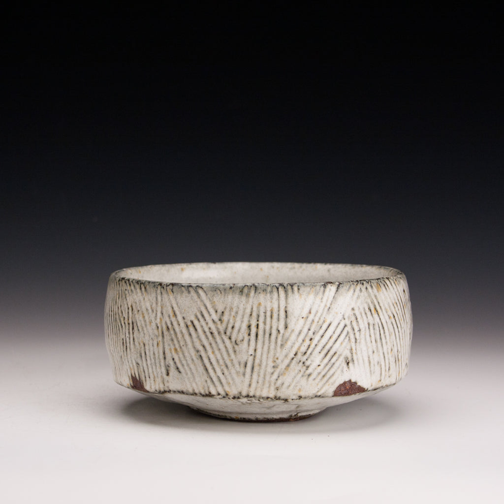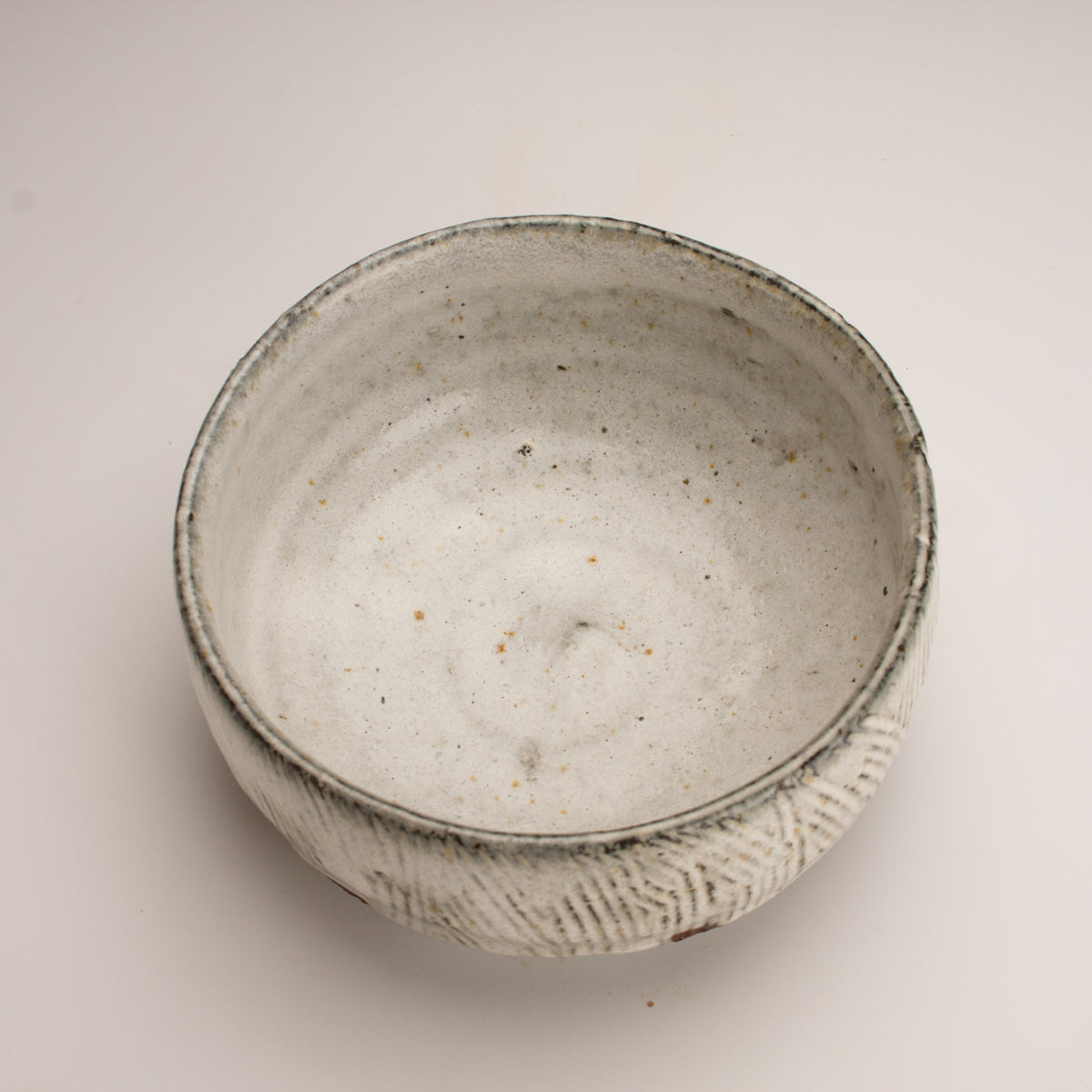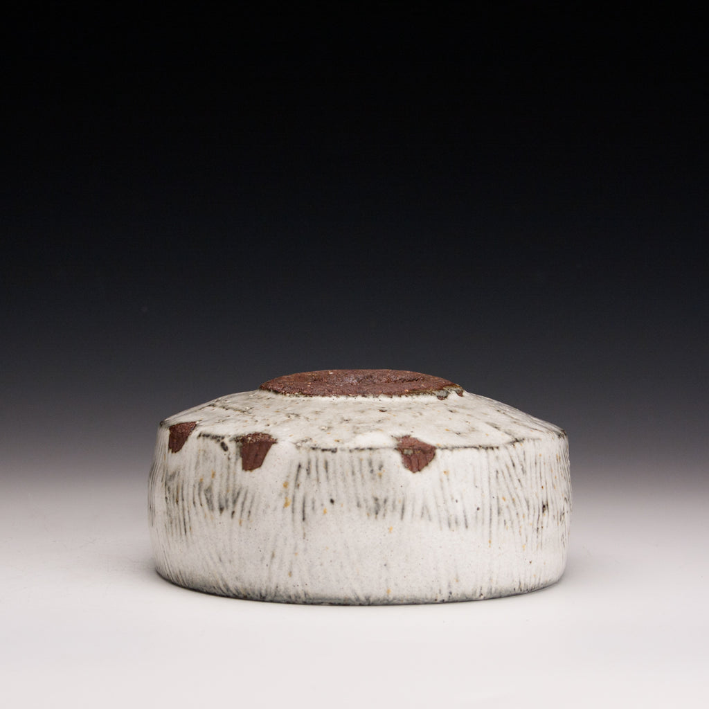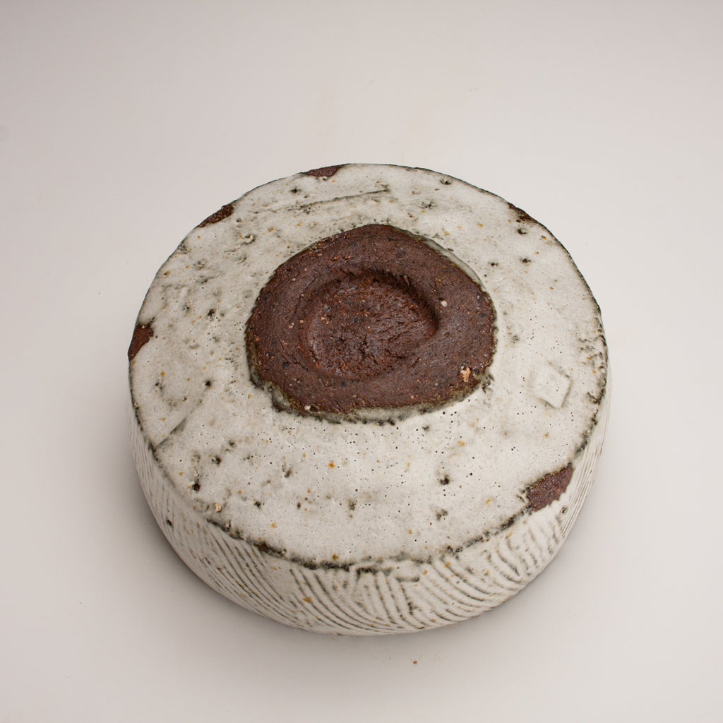 Wood fired local red clay. Combed clay with Nuka Glaze.  6 x 2.5