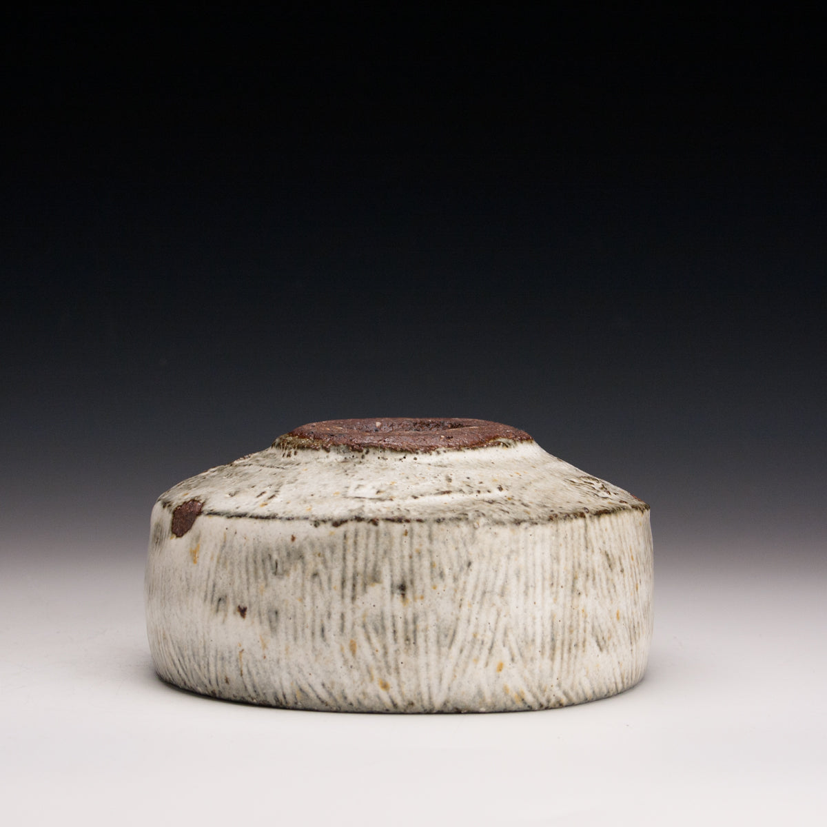 Wood fired local red clay. Combed clay with Nuka Glaze. 6 x 2.5