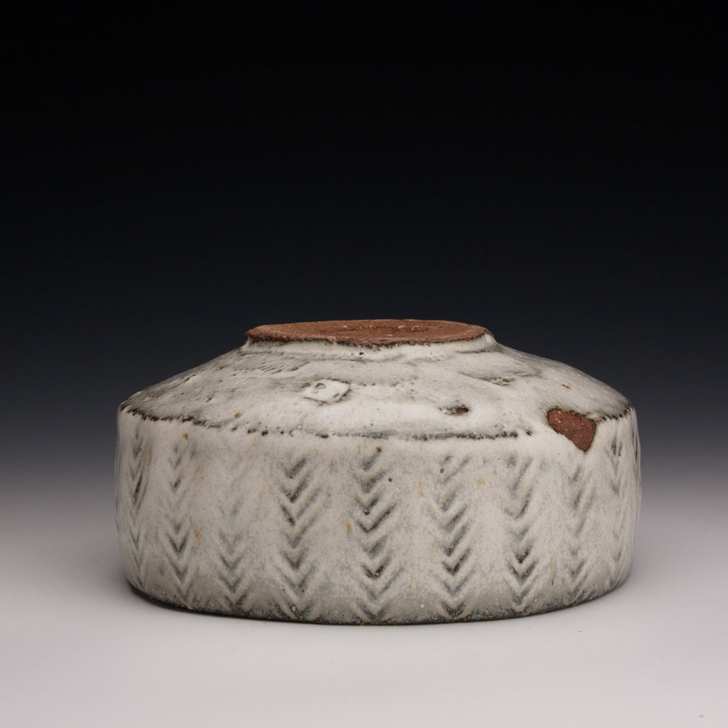 Wood fired local red clay. Textured Clay and Nuka glaze. 2.75 x 5.75