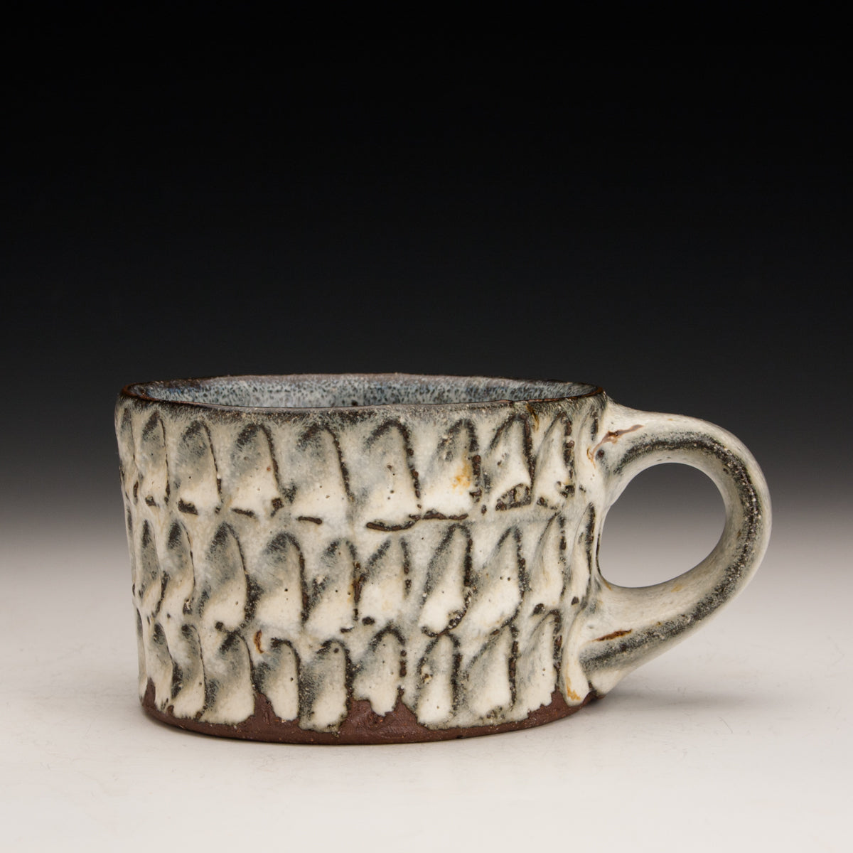 Wood fired local red clay. Carved Clay and Nuka Glaze.  5.25 x 2.75