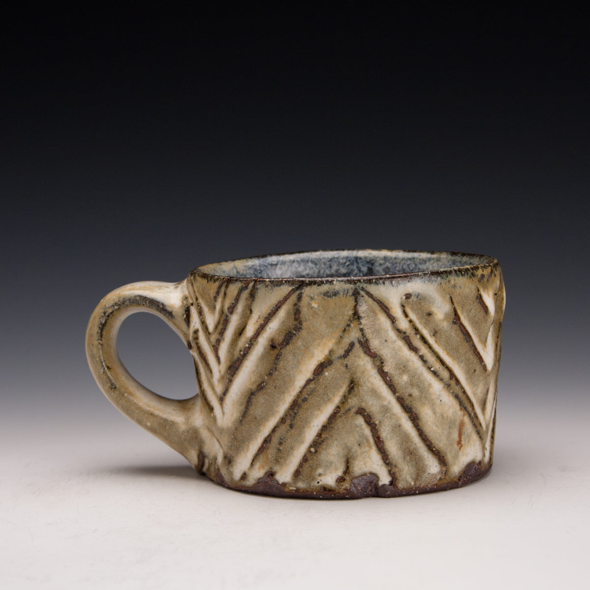 Wood fired local Red clay.  Carved clay and nuka glaze.  2.75 x 5.5 x 4