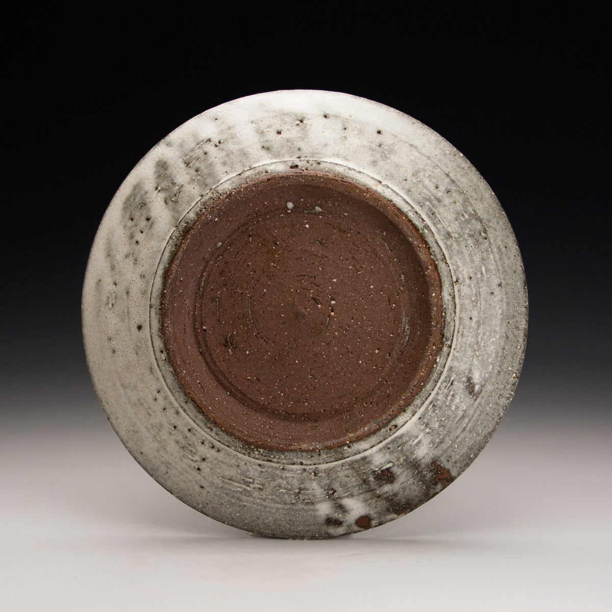 Wood fired local red clay. White slip trailing and Nuka glaze.  10.75 x 1.75