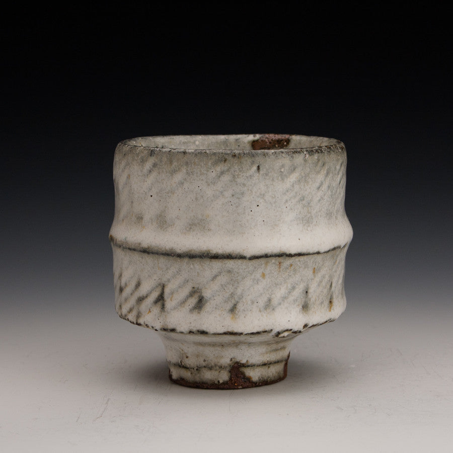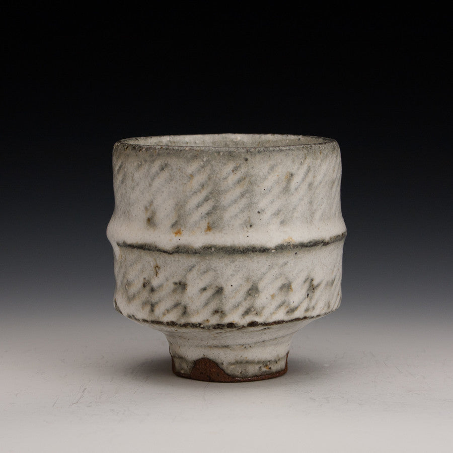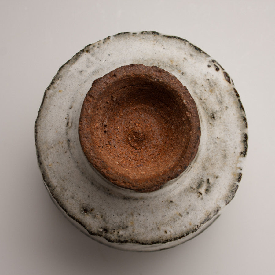 Wood fired local red clay.  Nuka Glaze and textured clay.  3.25 x 3.5