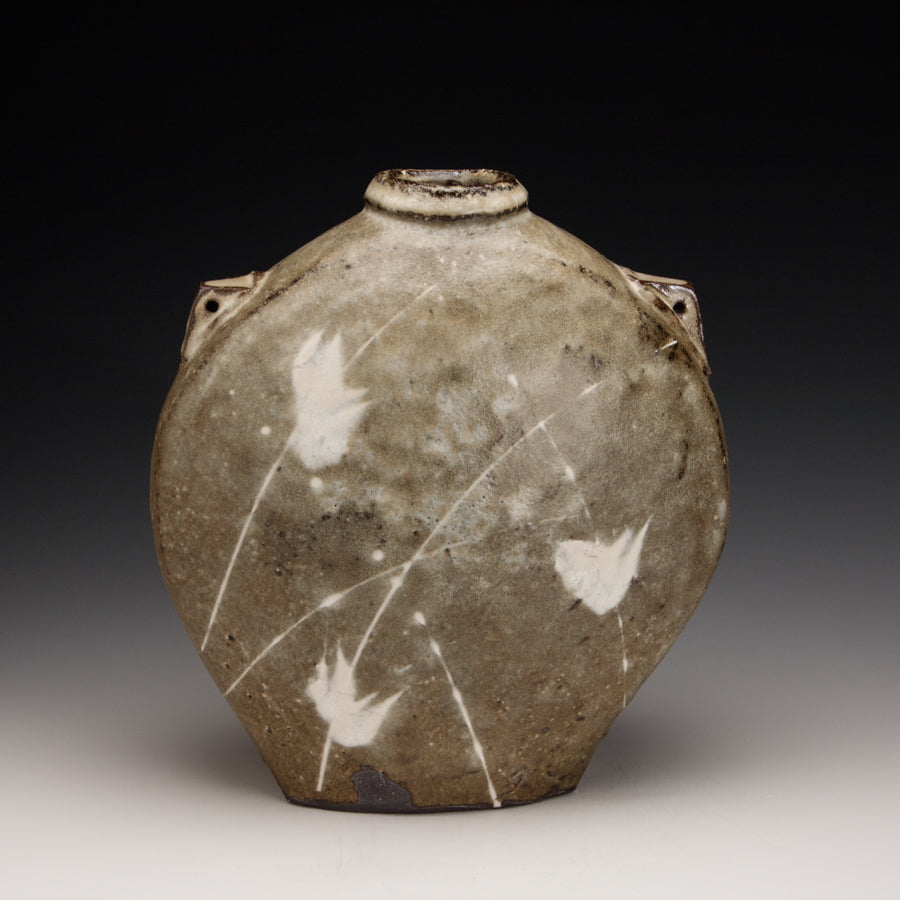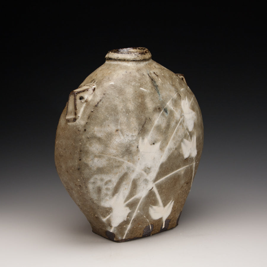 Wood fired local red clay. White slip and nuke glaze. 9 x 8 x 3