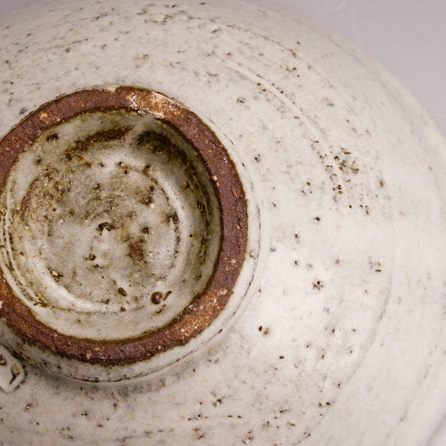 Wood fired local red clay. White slip under nuka glaze. 8.75 x 7.75 x 3.75