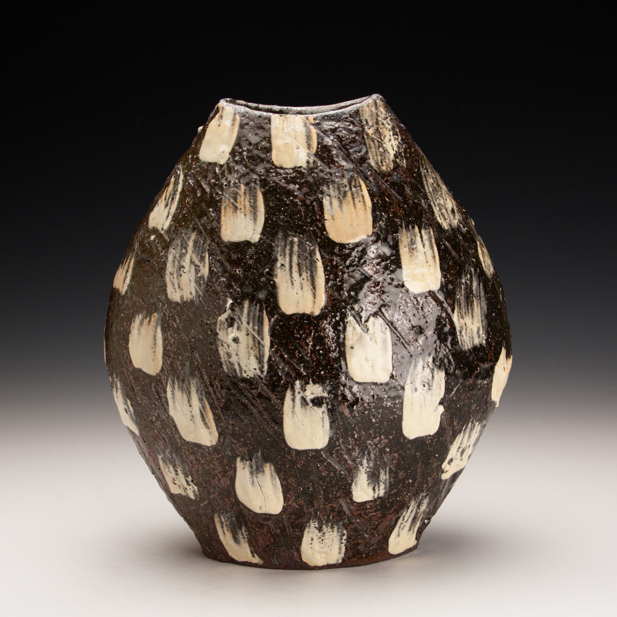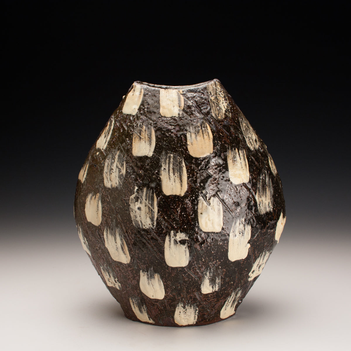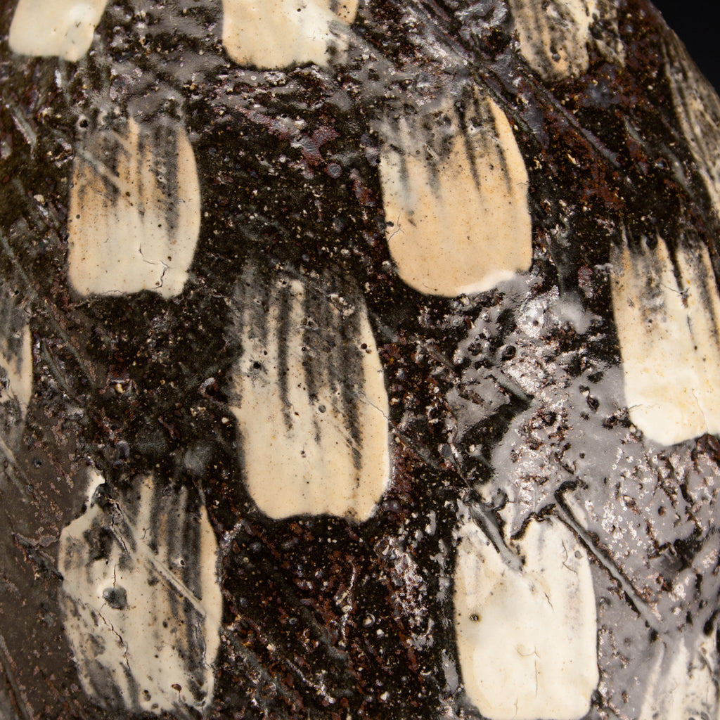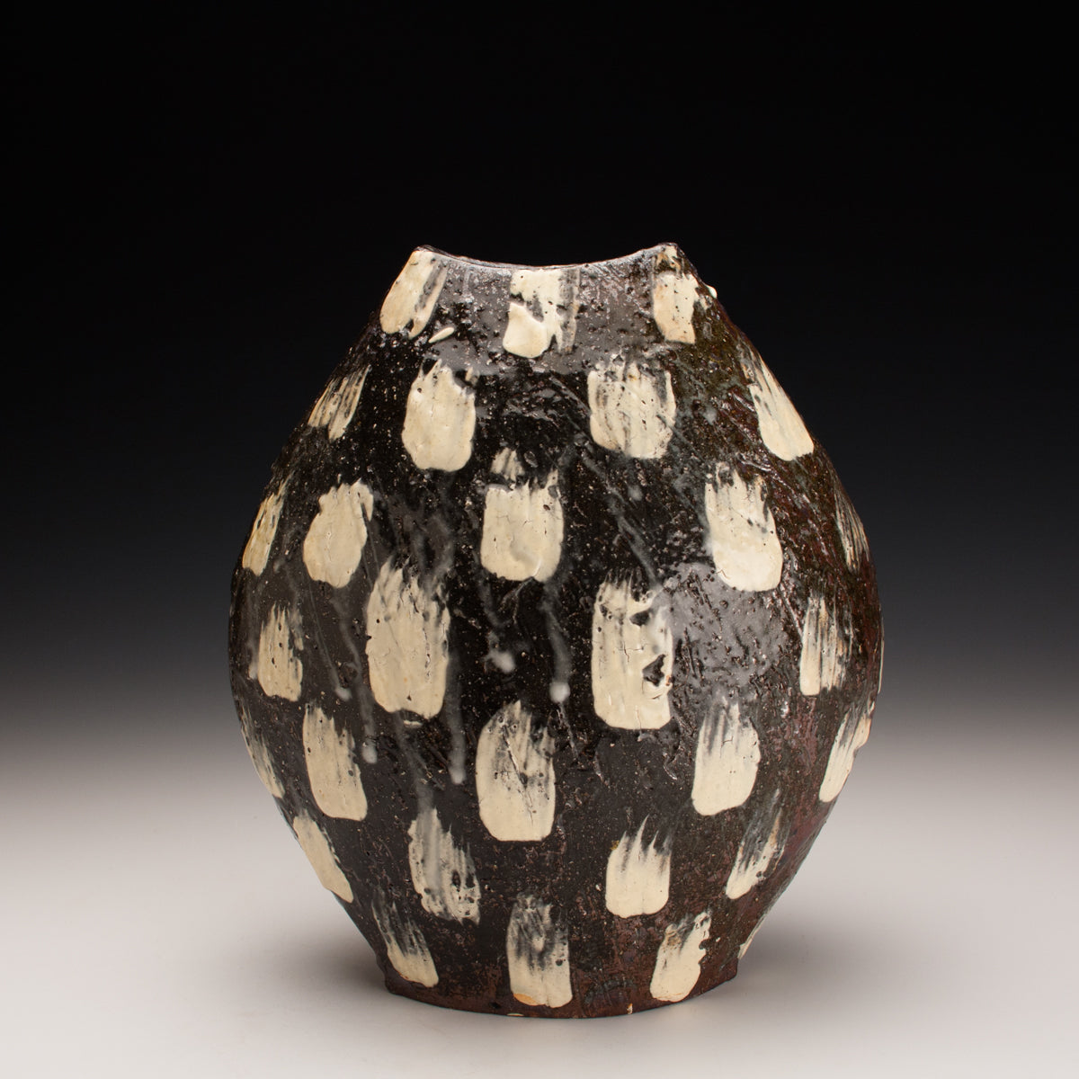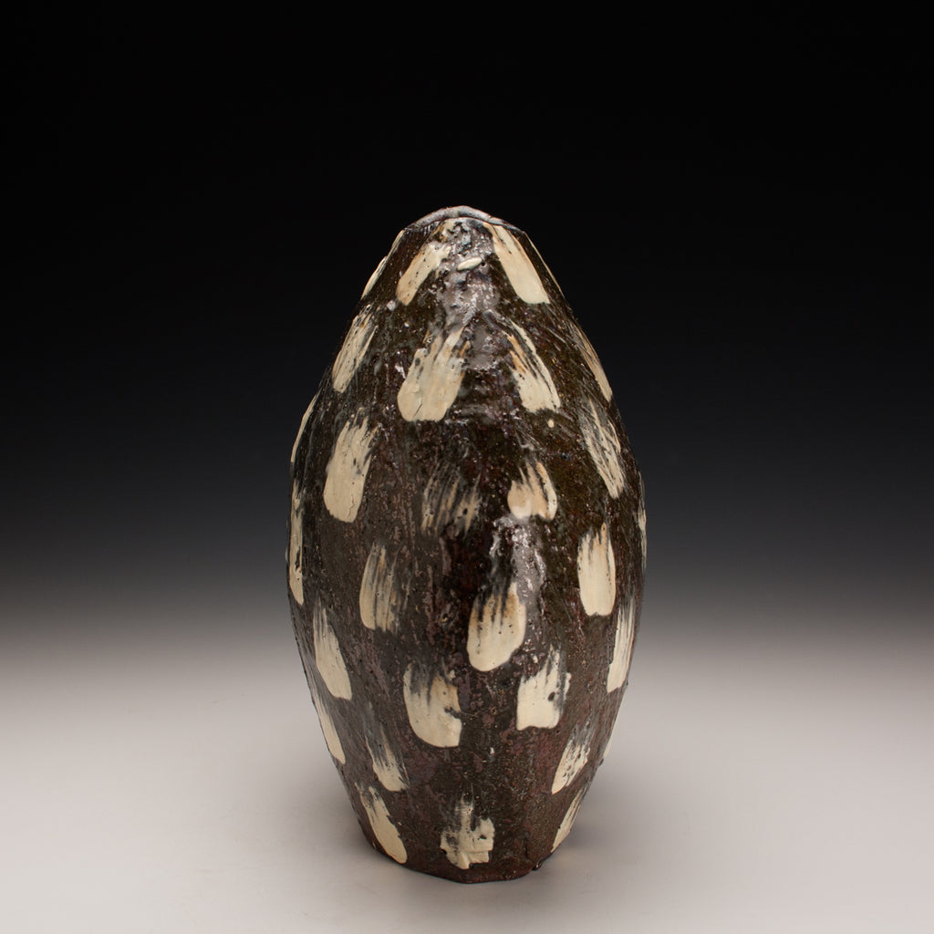 Wood fired local red clay. White Slip dashes and clear glaze. 10 x 8.5 x 5.5