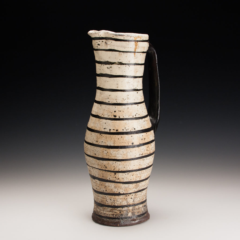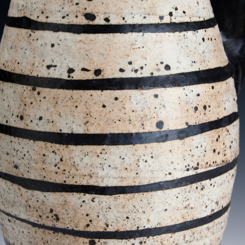 Wood fired local red clay. Wax resist and iron stripes. 5.5 x 13.5