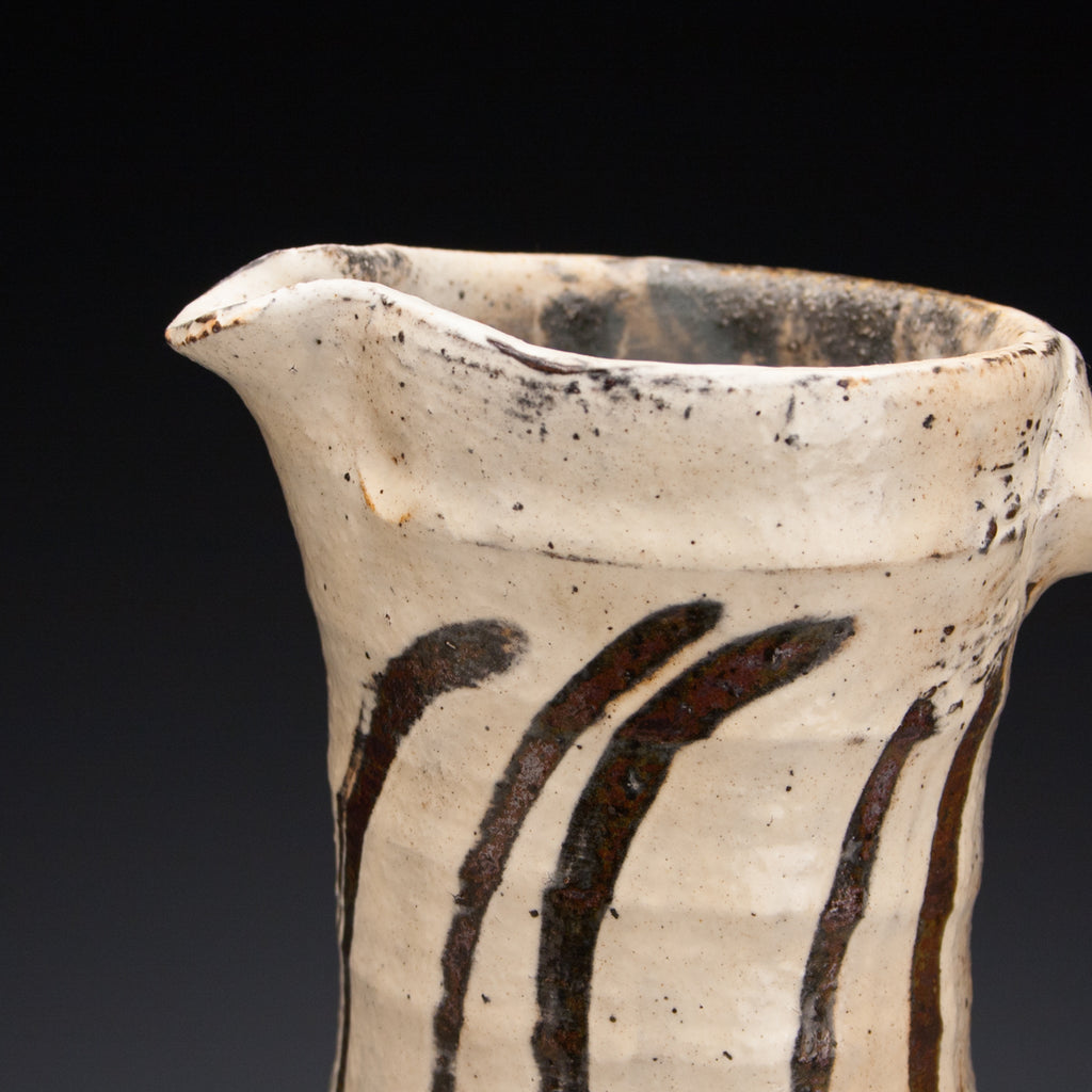 Wood fired local red clay. White slip, finger wipes and clear glaze. 13.75 x 5.5