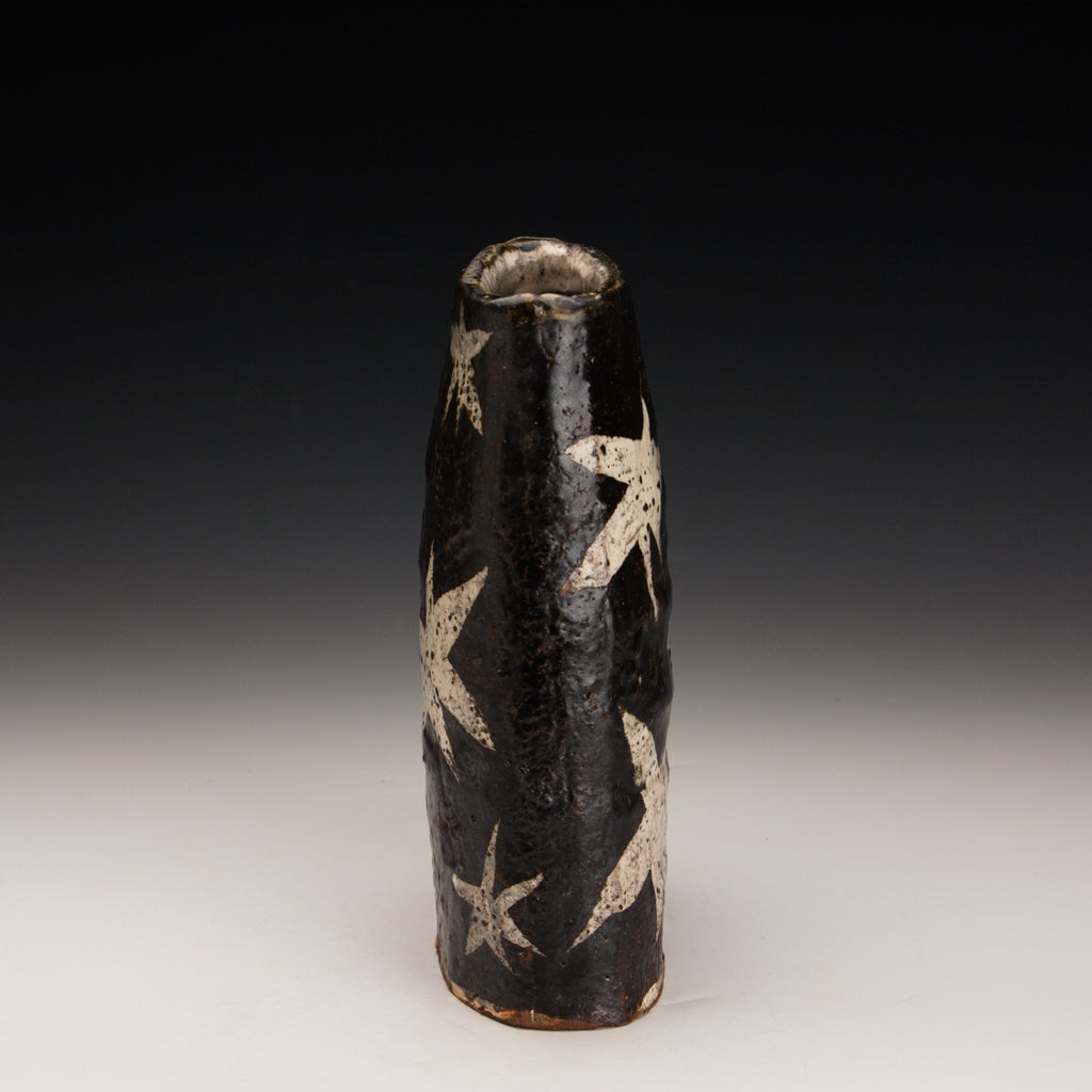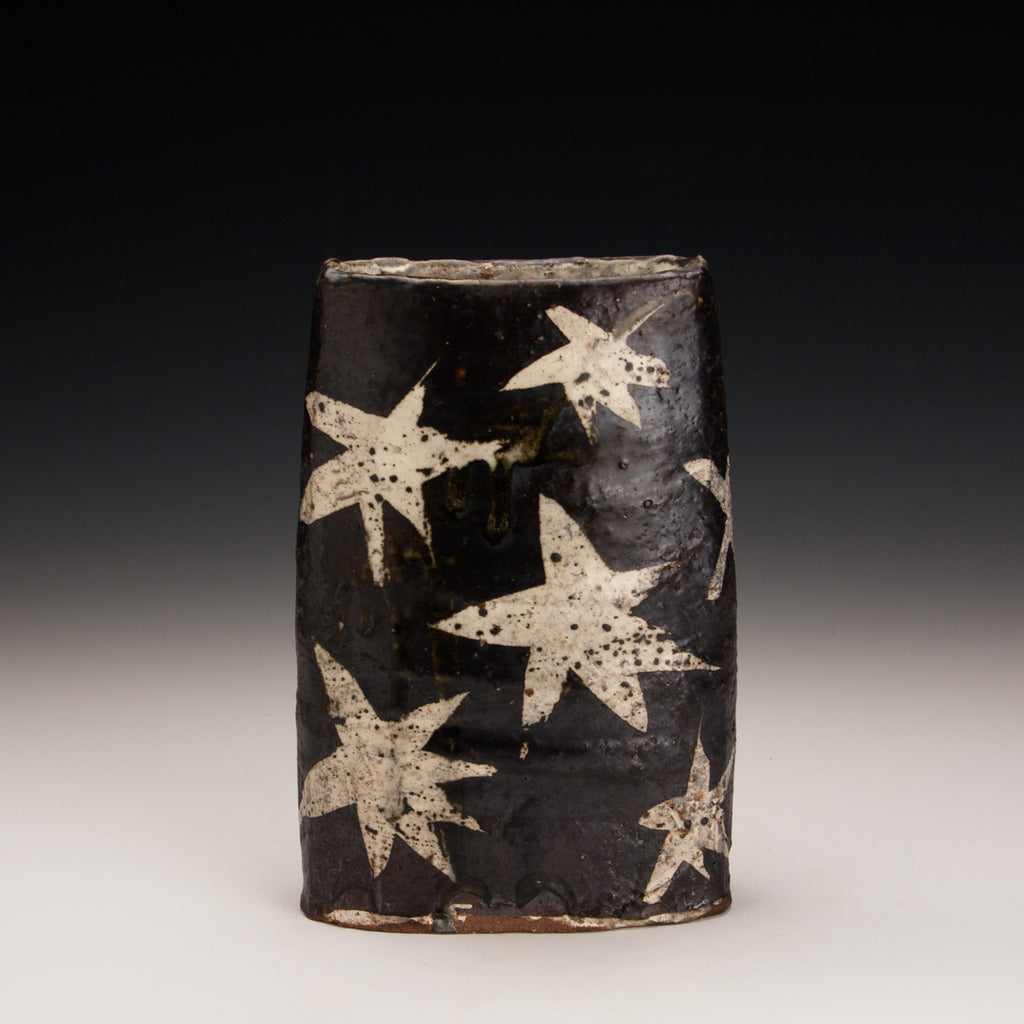 Wood fired local red clay. Wax resist and iron deco.  8" x 5.5 x 2.5