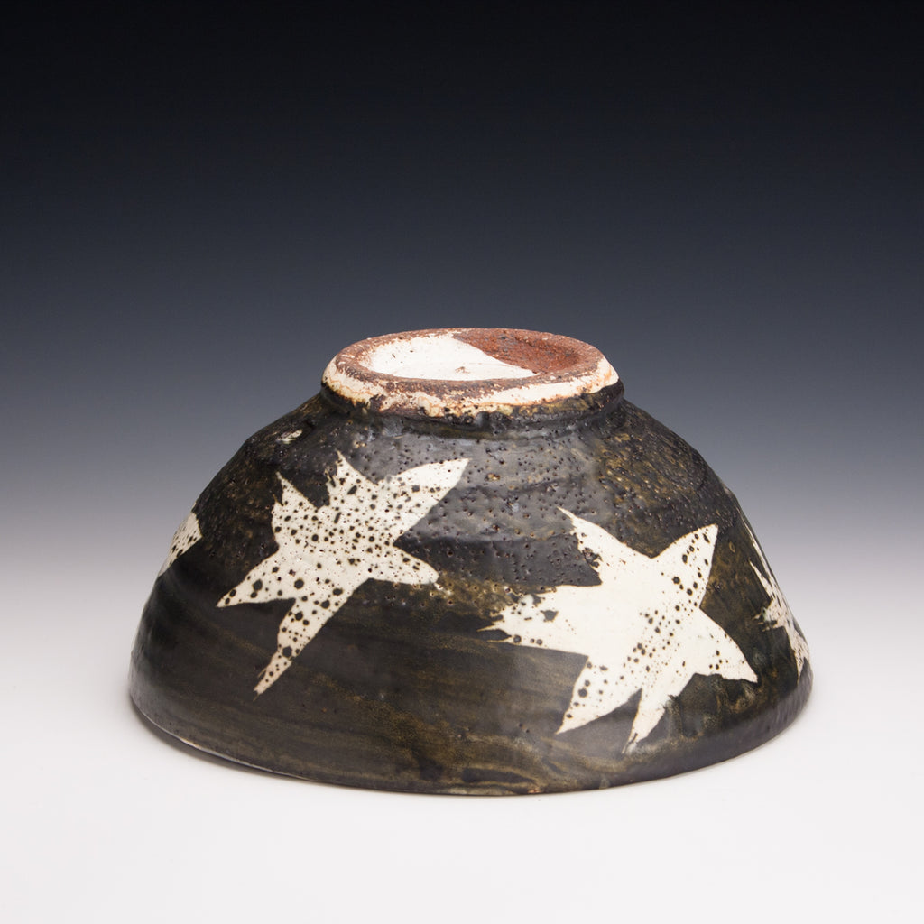 Wood fired local red clay.  Wax resist and iron wash.  4 x 8.