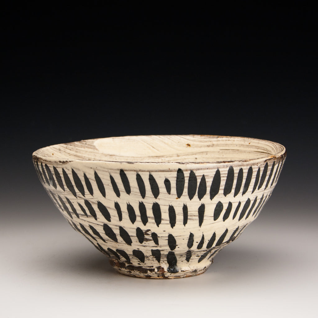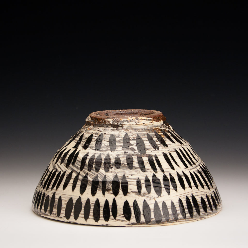 Wood fired local red clay. White slip, clear glaze and black iron. 8.5 x 4.25