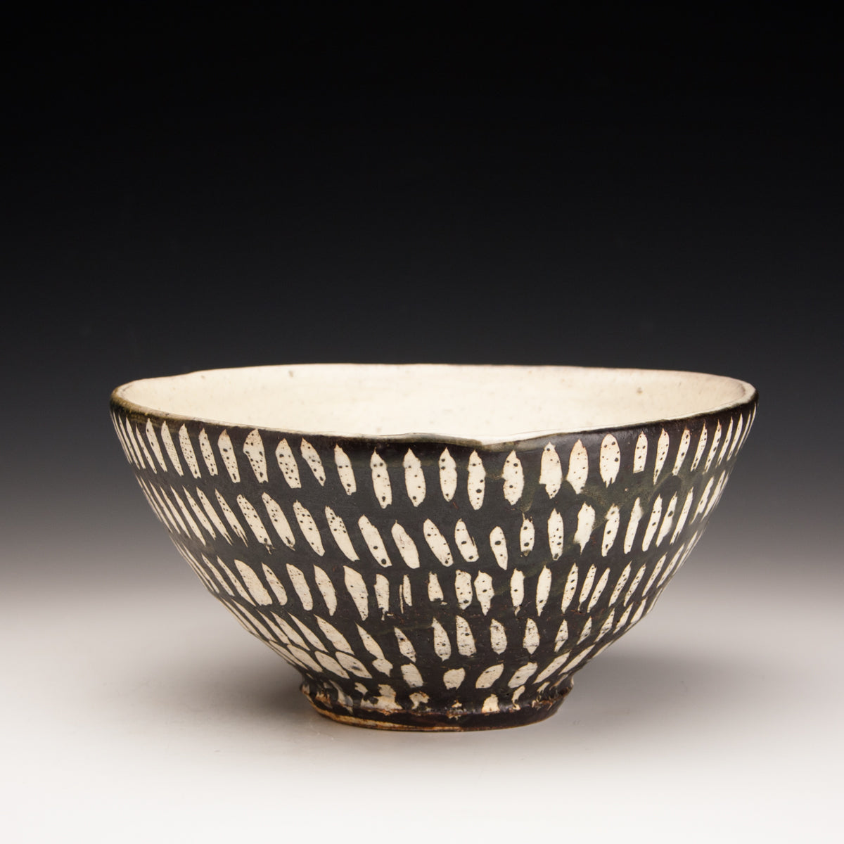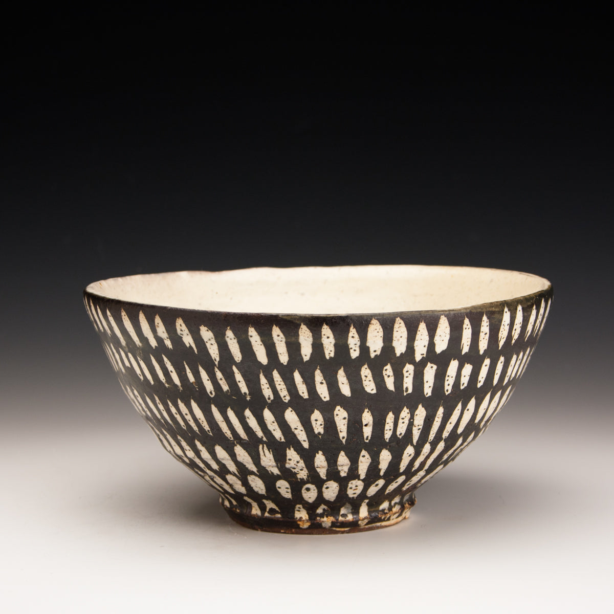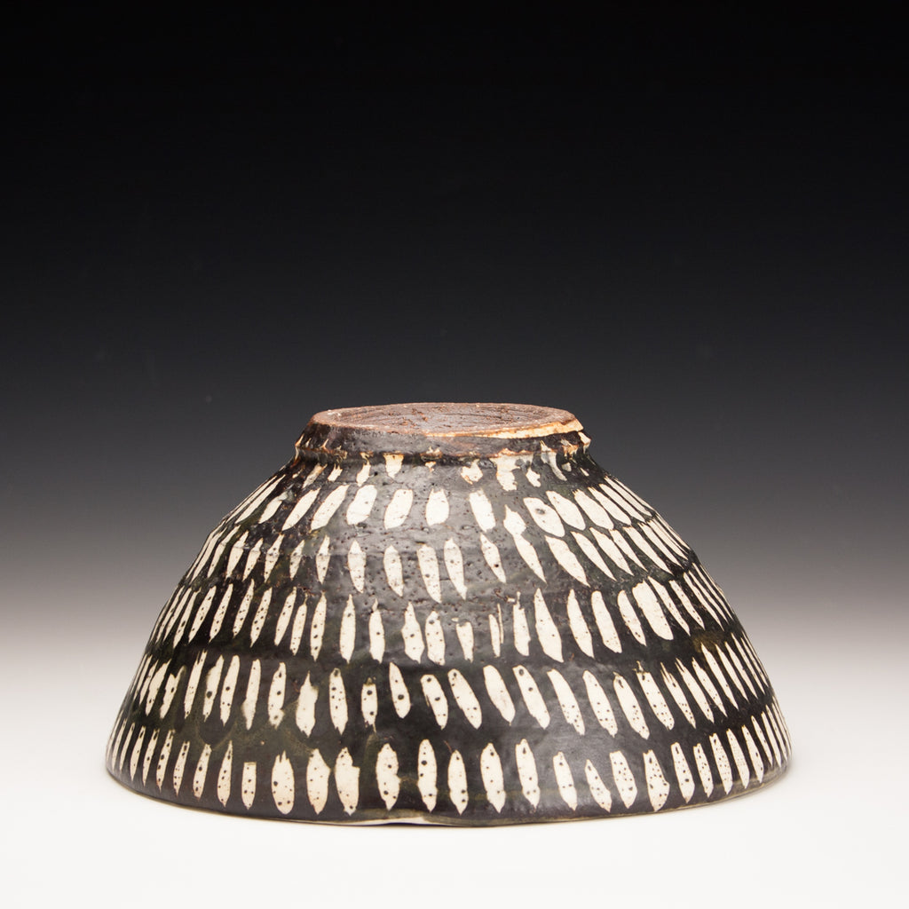 Wood fired local red clay. Wax resist and iron deco.  8.5 x 4.25