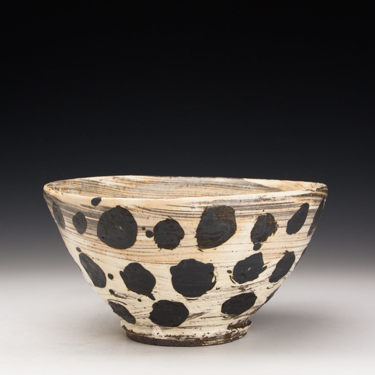 Local red clay. brushed slip and punchong glaze with Black deco. 8 x 4.5