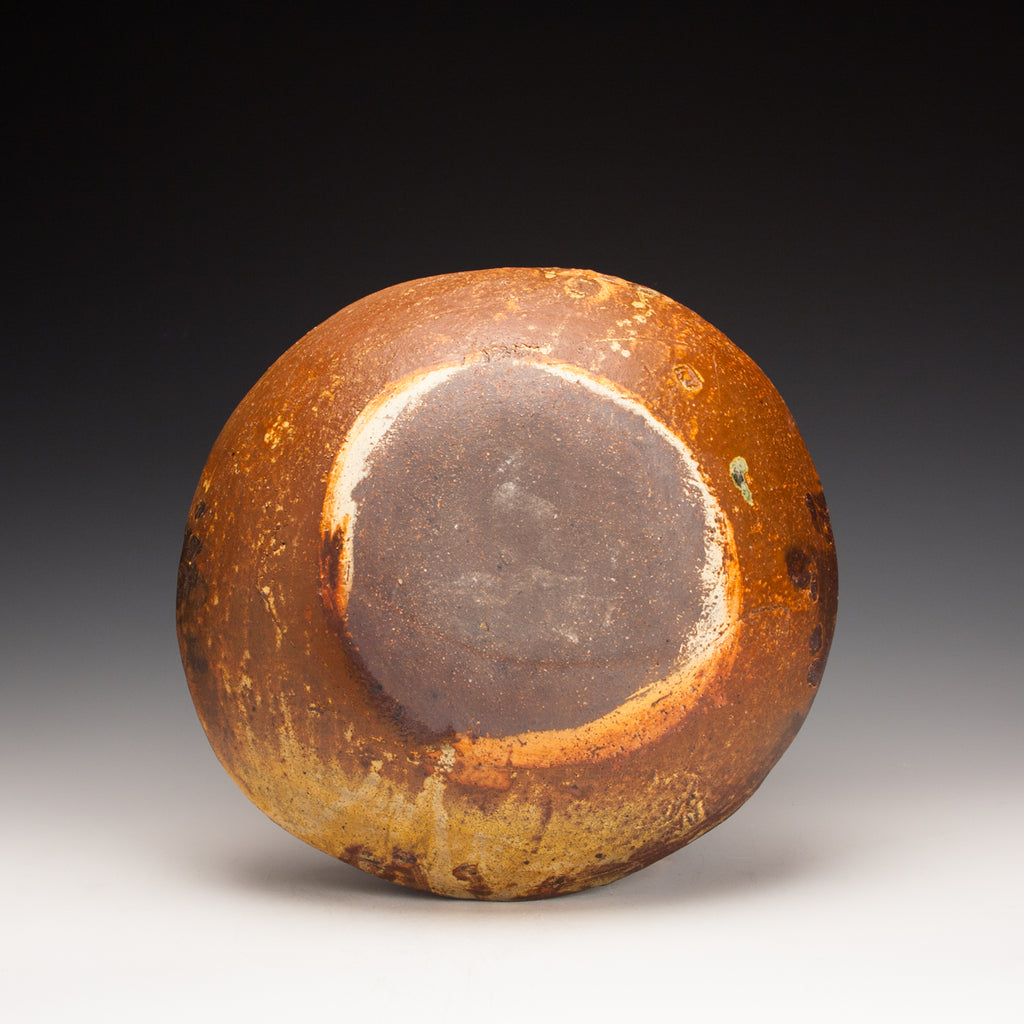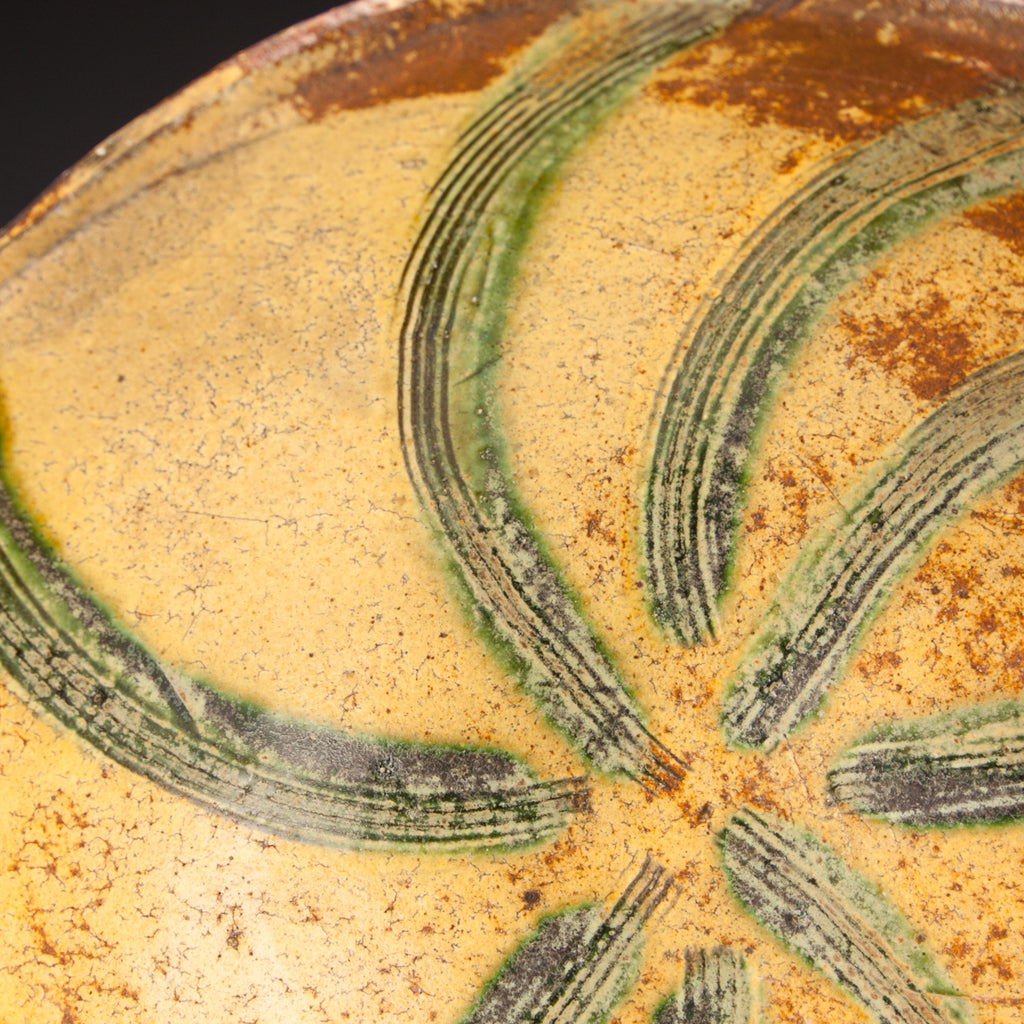 Wood fired local red clay. Yellow Galze and Green deco. 11 x 3.25