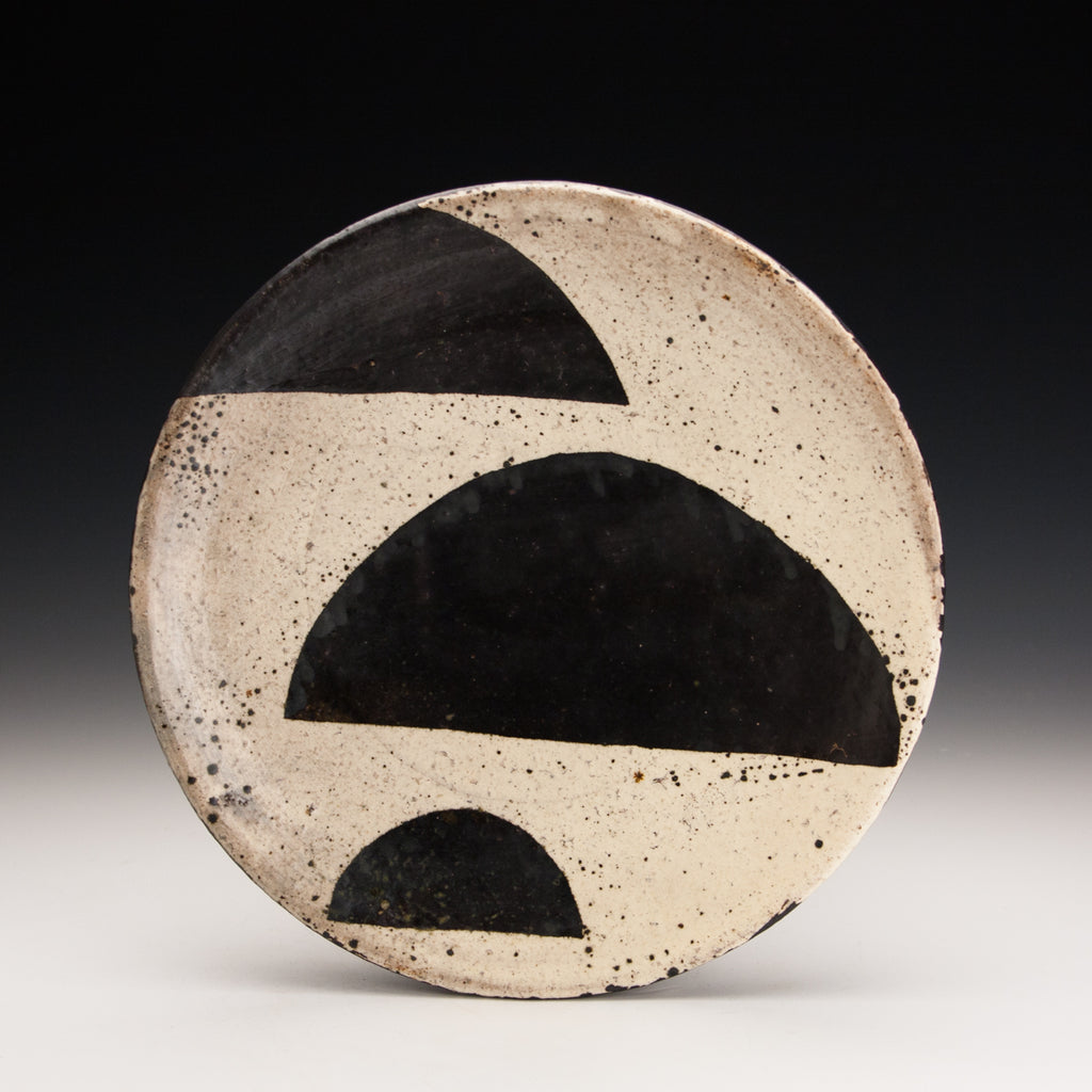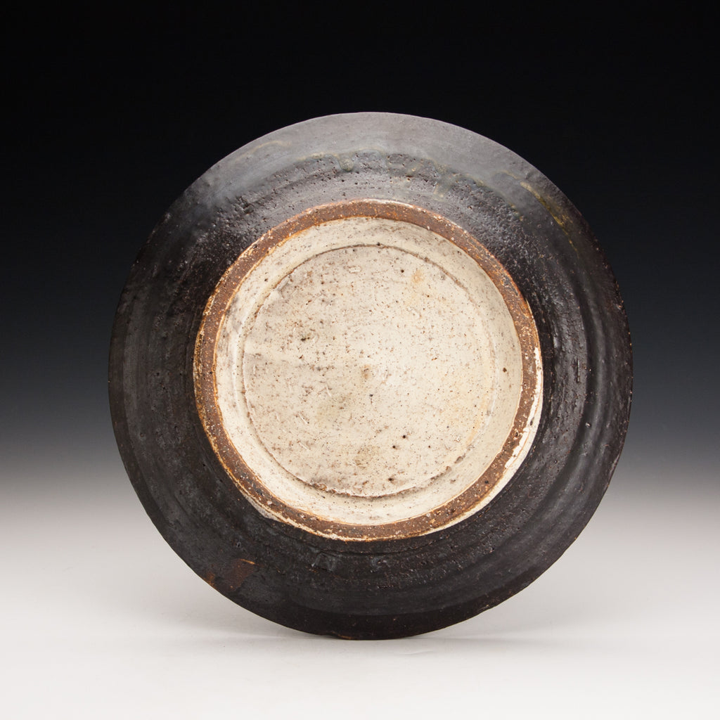 Wood fired local red clay. Wax resist and iron deco. 10.5 x 1.5