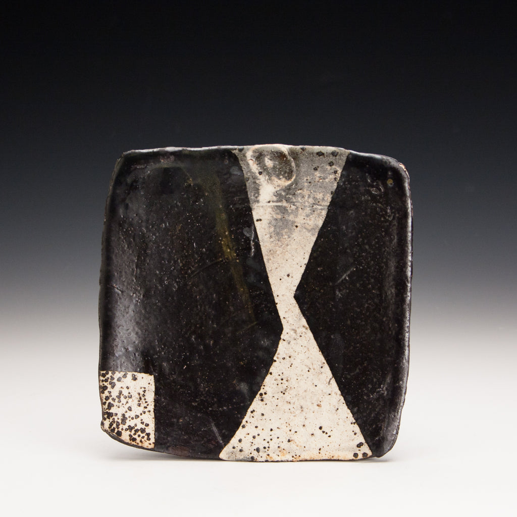 Wood fired local red clay. Wax resist and iron. 6.5 x 1