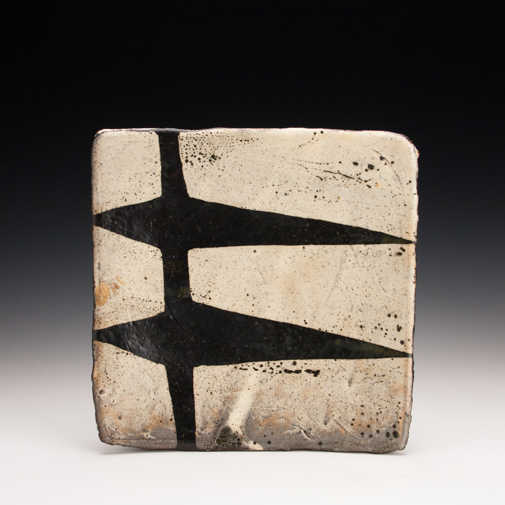 Wood fired local red clay. Wax Resist and Iron Deco.  9 x 1.75 ea