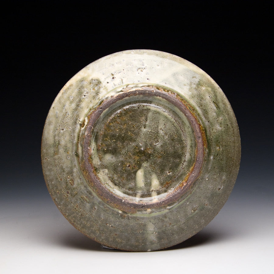 Wood fired local red clay. Wax resist pattern with iron wash and clear glaze. 1.25 x 8.25