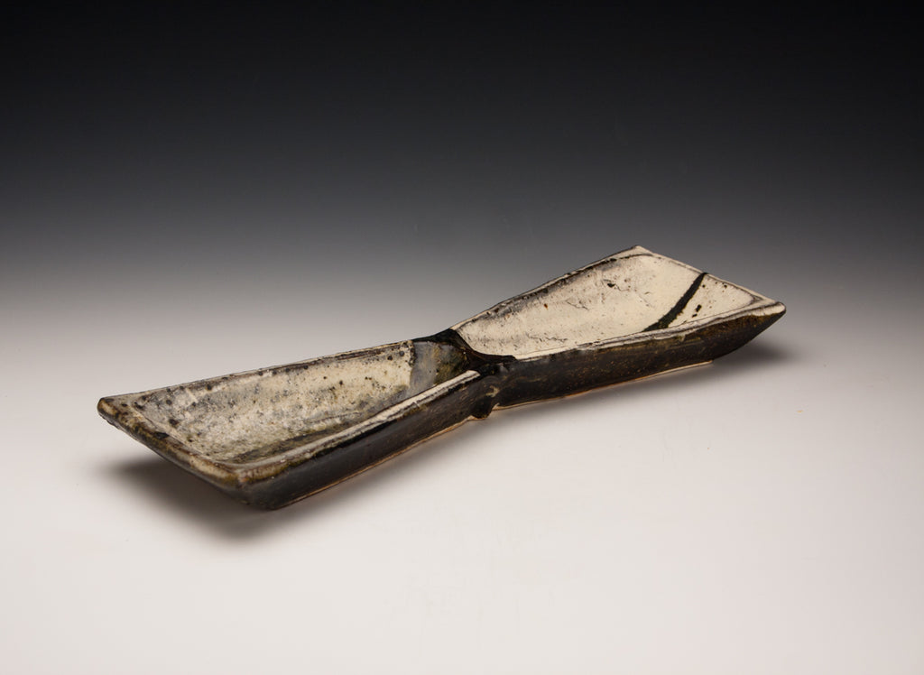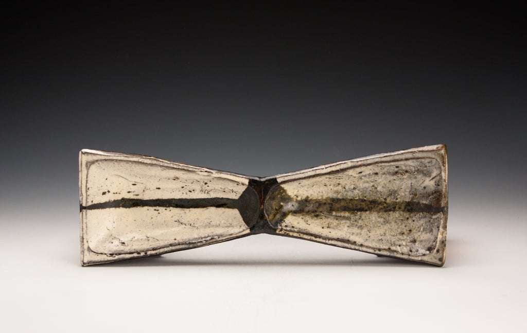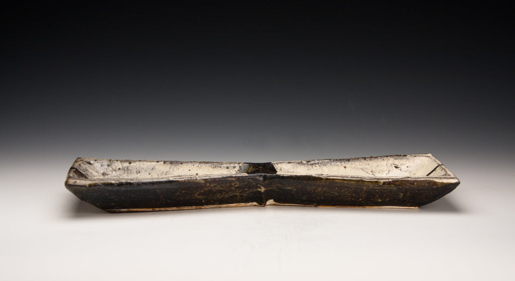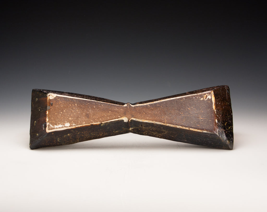 Wood fired local red clay. Wax resist and iron deco. 1.25 x 10.25 x 6.25