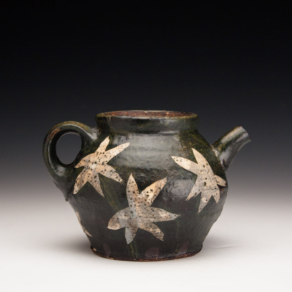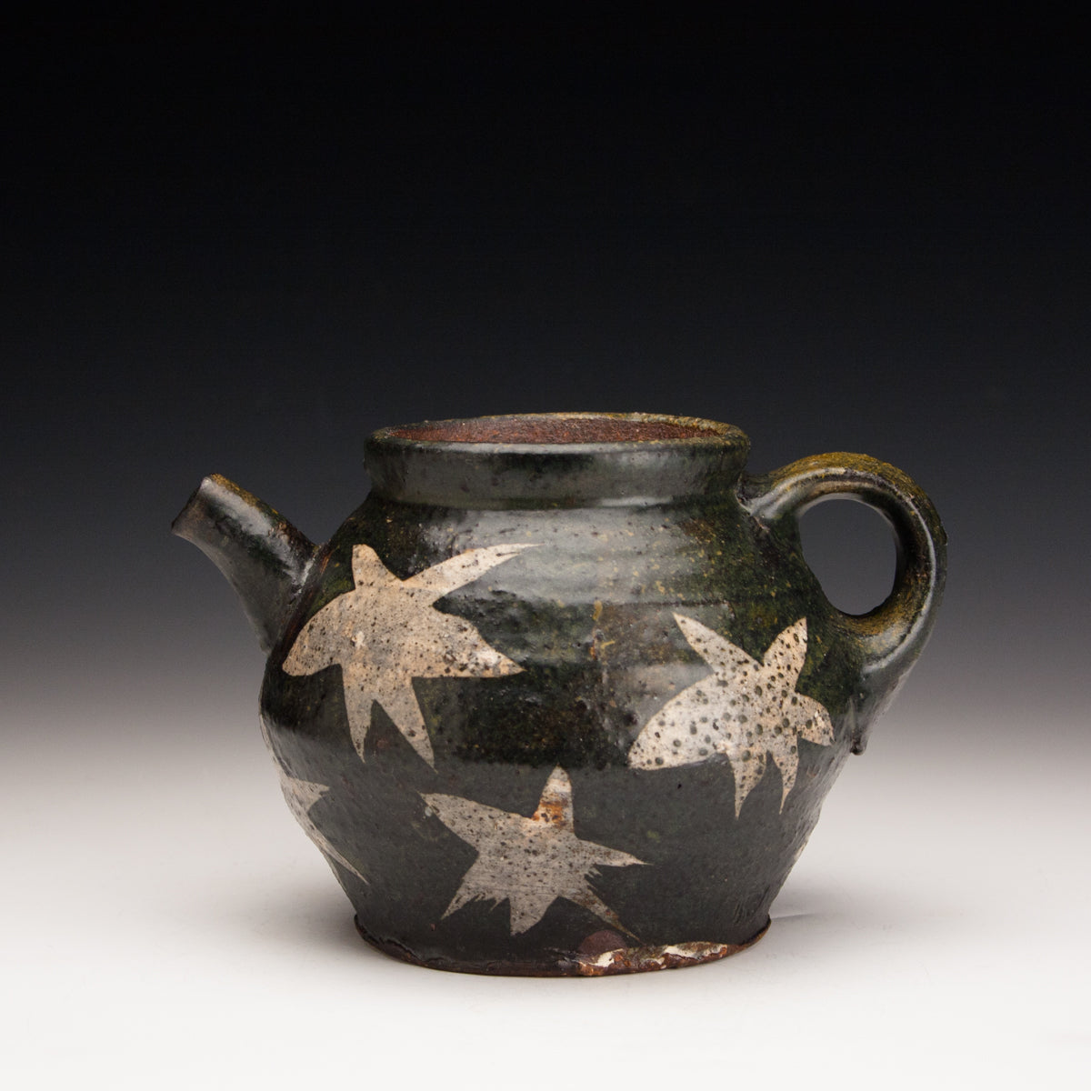 Wood fired local red clay.Wax resist and iron deco. 7 x 4.5 x 5